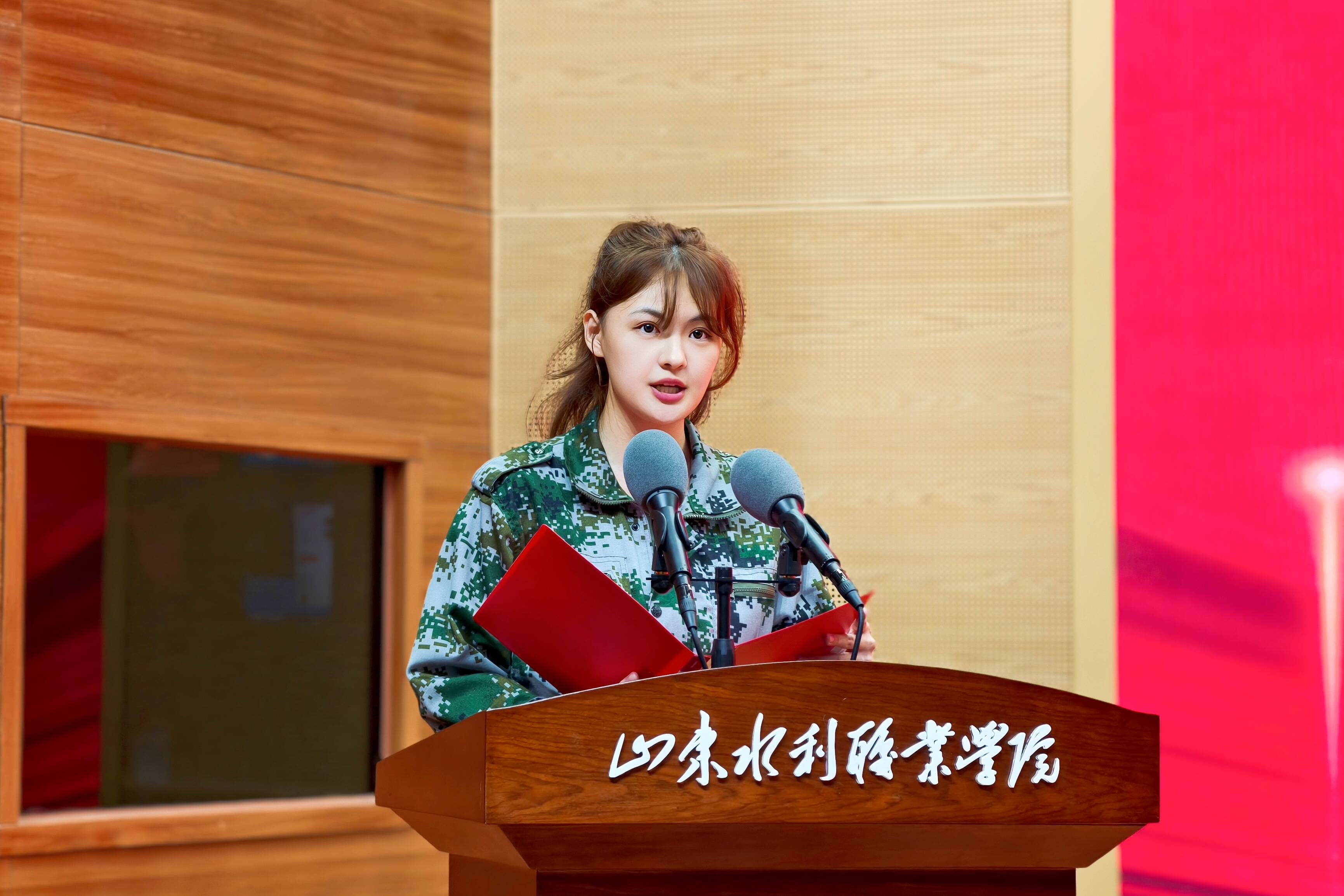 财税A251班刘洛言代表新生发言,期待同学们能以积极心态面对成长难题,在水院的广阔舞台上尽情展现自我。