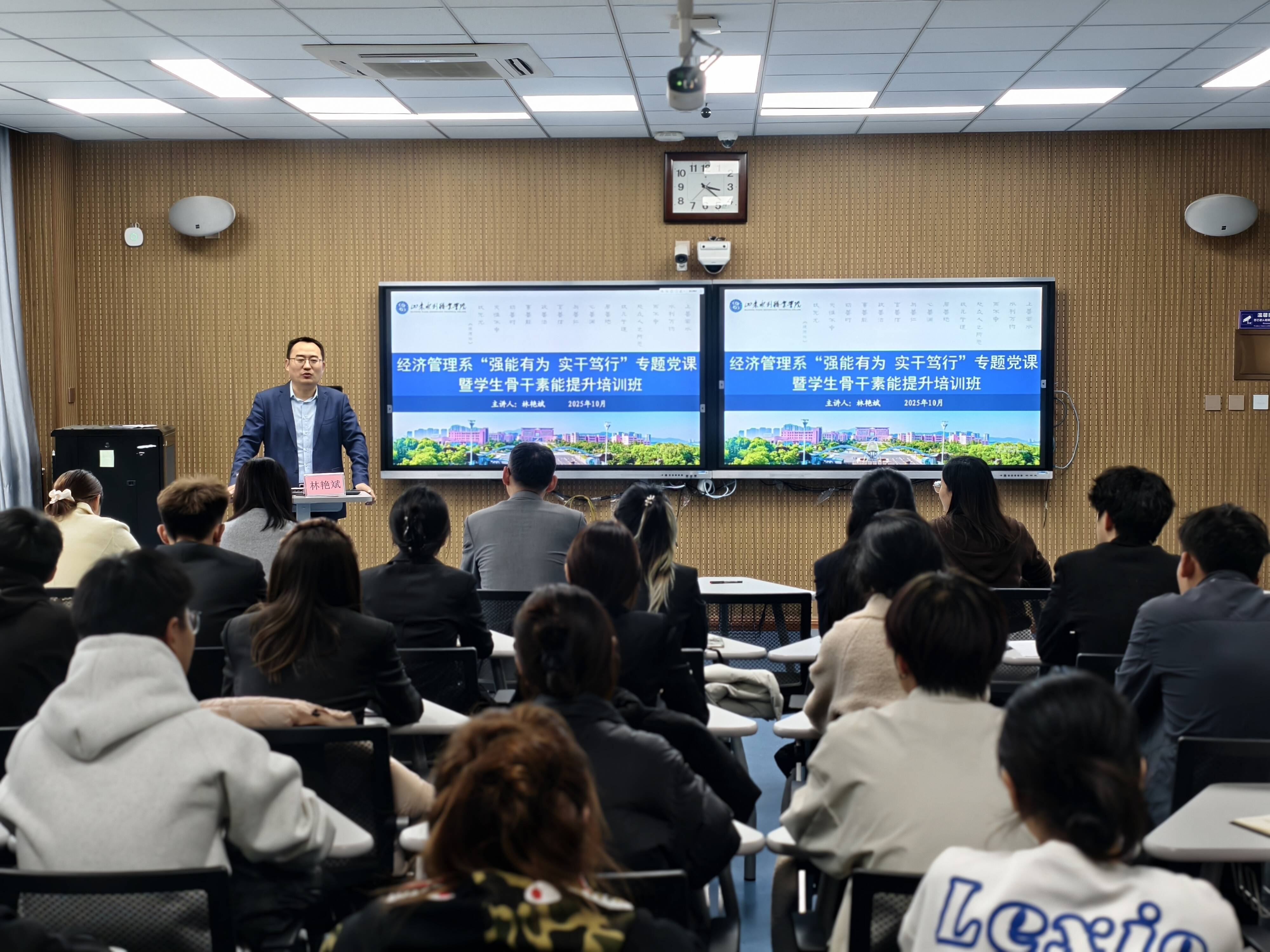 10月30日,经济管理系成功举办“强能有为 实干笃行”专题党课暨学生骨干素能提升培训班。学院党委委员、副院长林艳斌出席并担任主讲。会议由系党总支书记王健主持。全体辅导员以及各班入党积极分子、学生骨干共同参会。