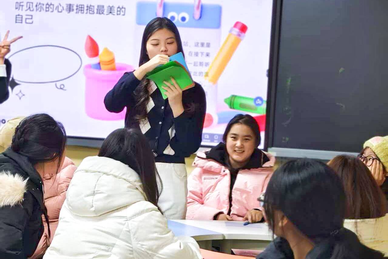 首场活动以“与压力共处,和情绪对话”为主题,打造沉浸式团体心理辅导。主讲老师跳出传统讲授形式,设计“压力情境模拟”“情绪能量球传递”“女生心事茶话会”等互动环节,引导学生在体验中觉察压力、学习调适技巧。