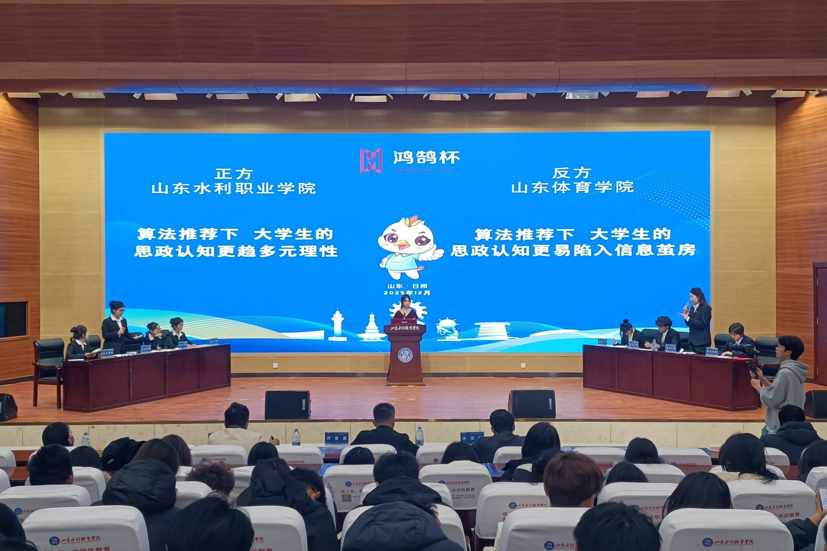 经过前期校园选拔赛的层层筛选及首轮抽签匹配,本场比赛的对战双方确定为山东水利职业学院代表队(主场正方)与山东体育学院代表队(反方)。比赛严格遵循立论陈词、攻辩质询、攻辩小结、对辩质询、自由辩论、总结陈词六大环节有序开展,围绕“算法推荐下,大学生的思政认知更趋多元理性还是更易陷入信息茧房”这一兼具时代性与思政内涵的辩题展开激烈交锋。