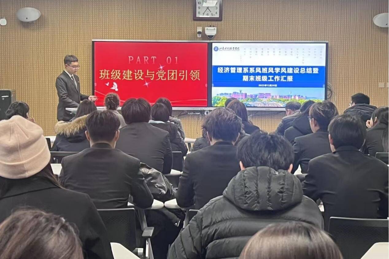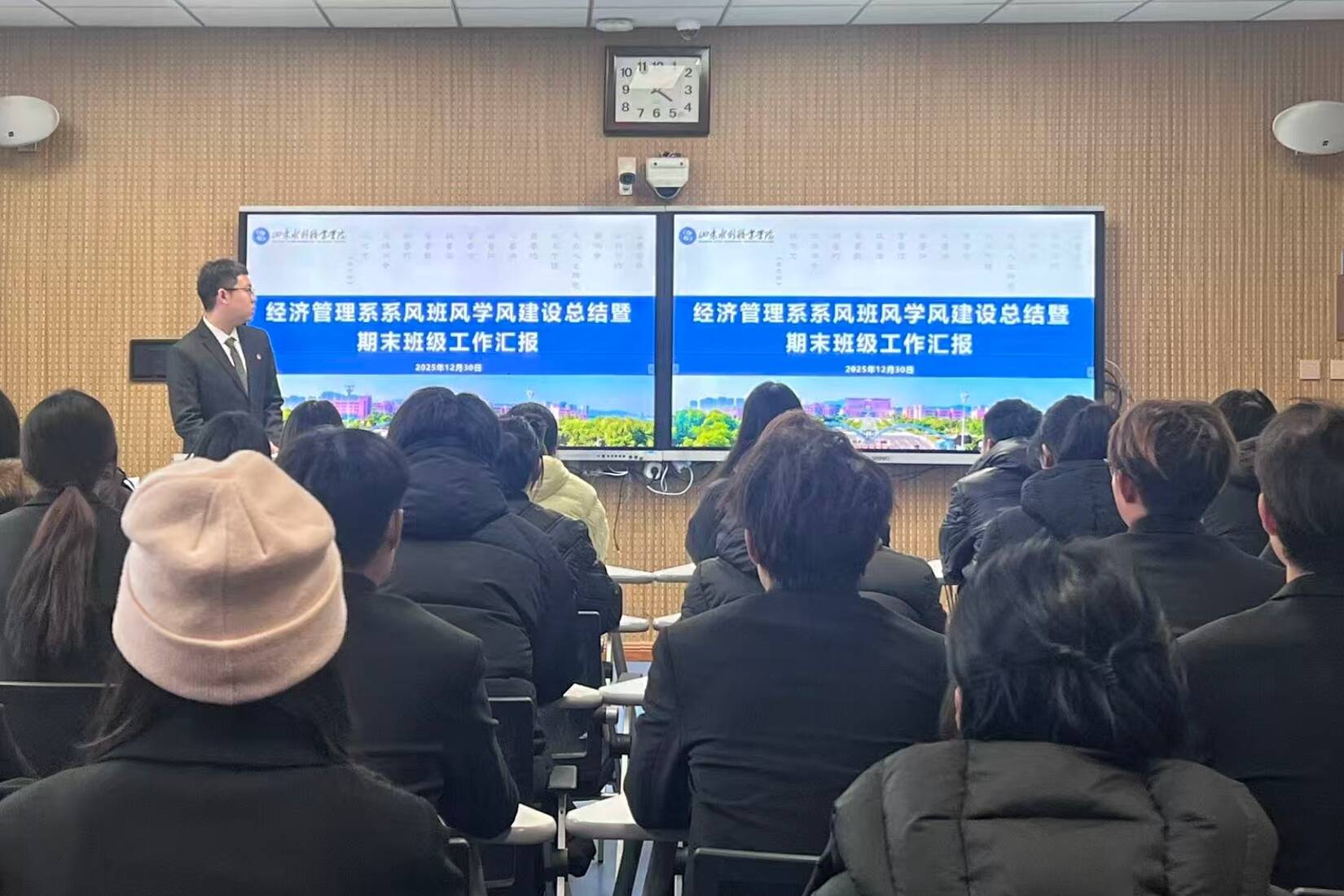 为深入推进系风、班风、学风建设,总结学期工作成效,经济管理系于12月30日组织开展了期末“三风”建设总结暨班级工作汇报系列活动。本次活动以“强化育人氛围,推动全面发展”为主线,通过多层次、多形式的活动安排,系统梳理了一学期以来在系风引领、班风塑造和学风提升方面的实践与成果。党总支副书记陈国松、全体学工人员以及24、25级学生骨干共同参会。