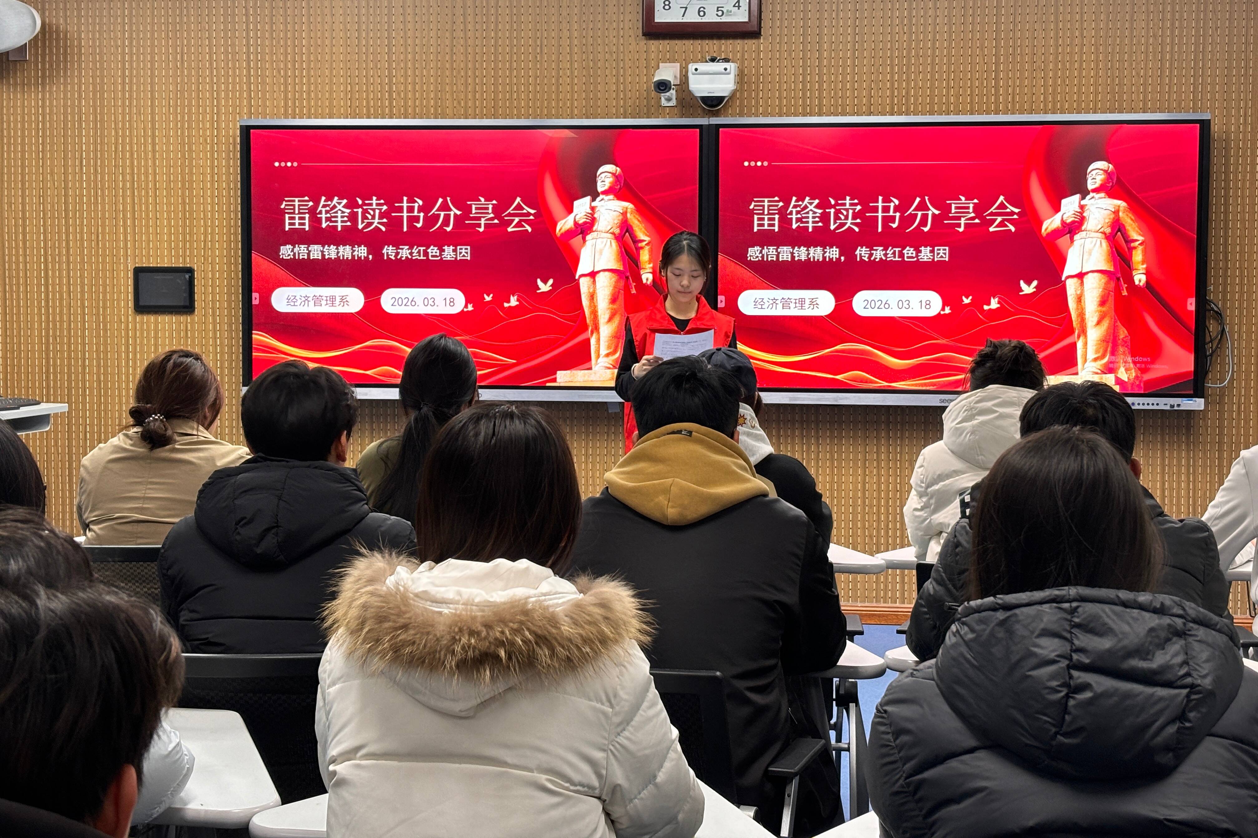 典籍共品读,赓续雷锋魂。“瀛萤之光”公益普法宣讲团组织学生在智慧教室共读《雷锋日记》《红岩》等红色经典作品,宣讲团代表结合实践经历分享感悟,带领大家在文字中感悟崇高精神、汲取奋进力量,引导学子将奉献担当融入学习生活,坚定理想信念。