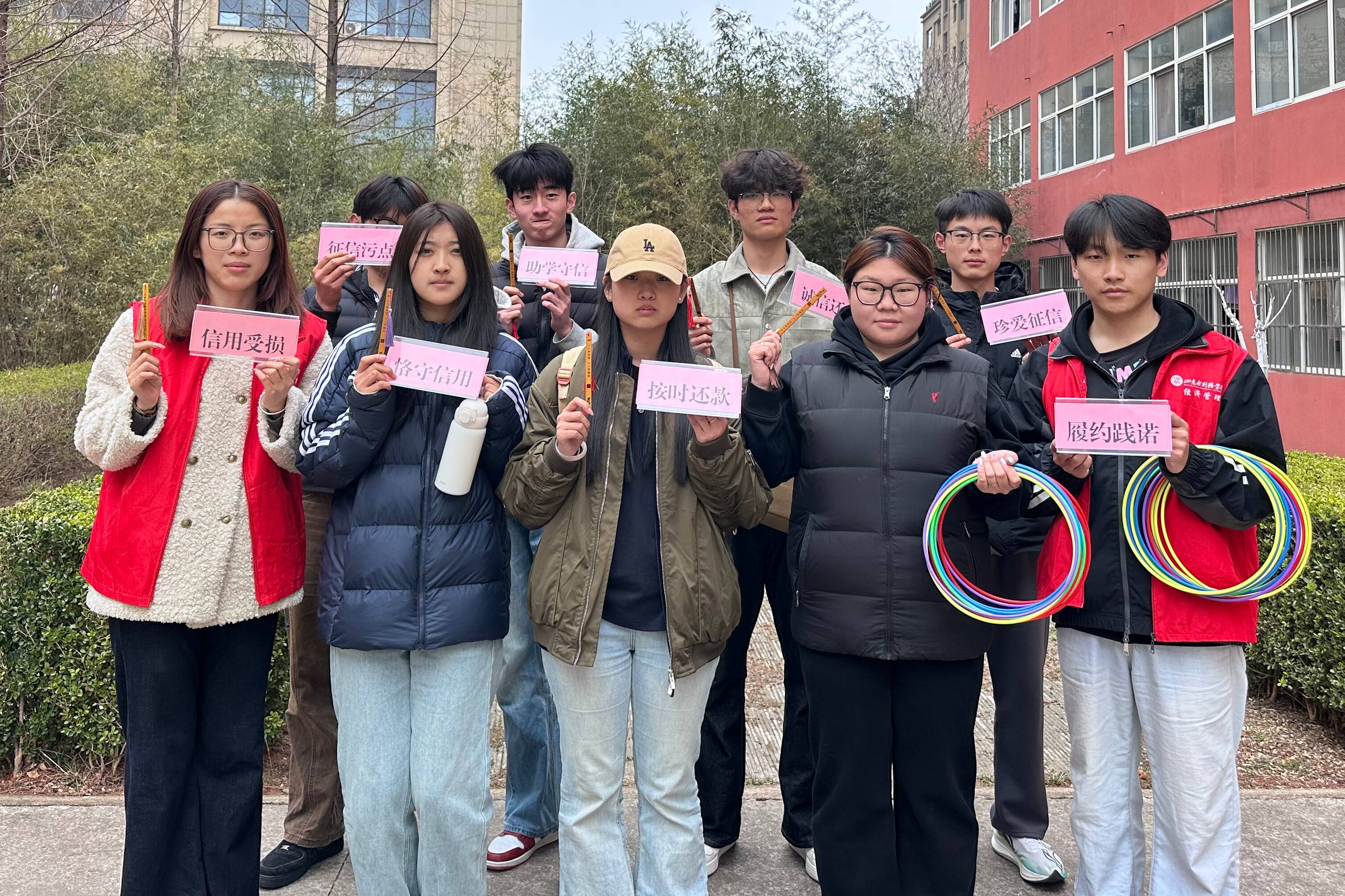 诚信立根本,金融传新知。“信好有你”志愿服务队在园区内设立金融诚信宣传打卡点,以“征信知识套圈”的趣味形式,向学生普及征信维护、助学贷款、信用风险防范等金融知识,引导大家树立正确信用观念,自觉维护个人征信,进一步提升青年学生的金融素养和风险防范能力。