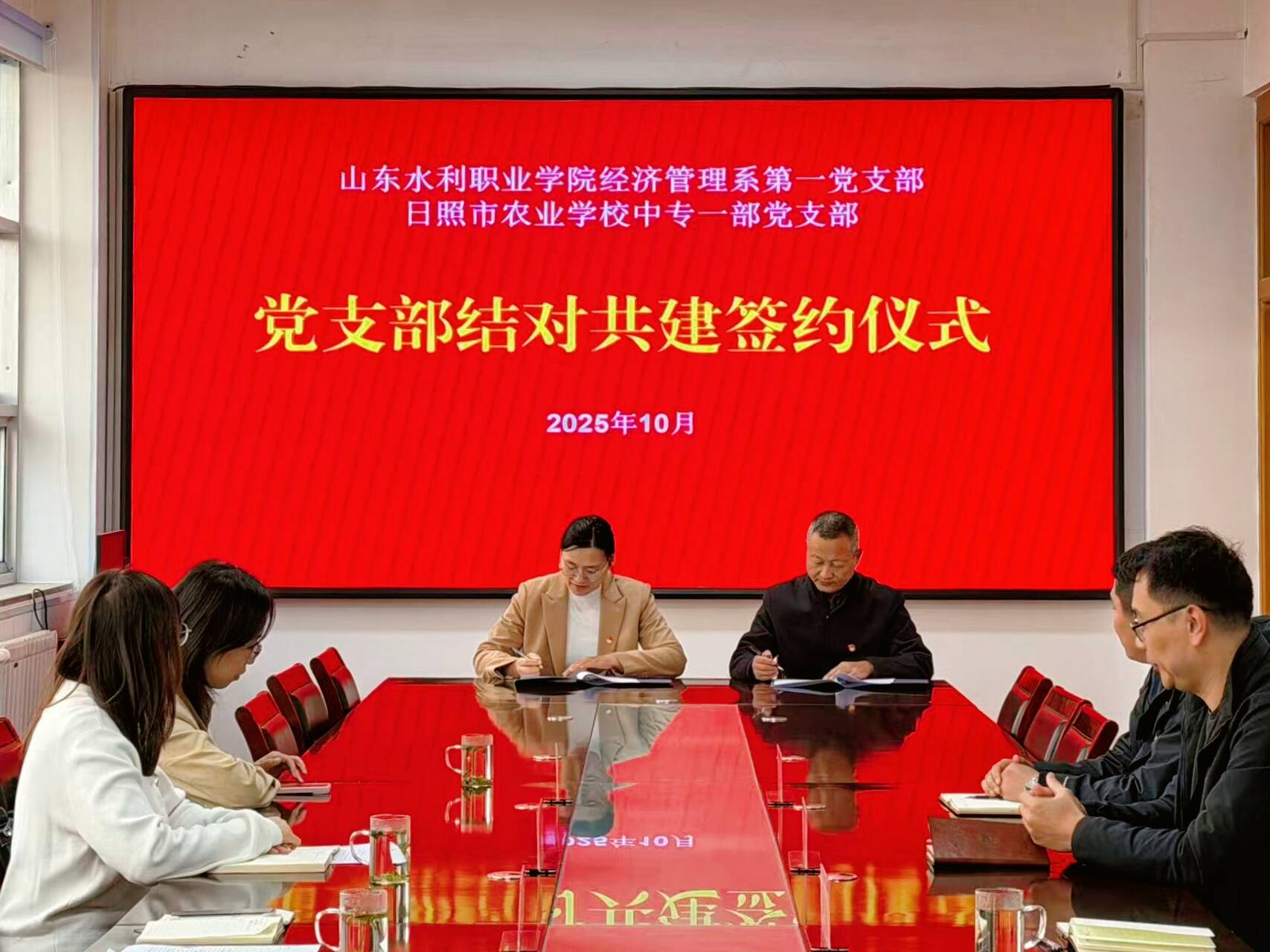 近日,经济管理系第一党支部与日照市农业学校举行党支部结对共建签约仪式。日照市农业学校中专一部党支部、经济管理系第一党支部相关负责同志参加活动。