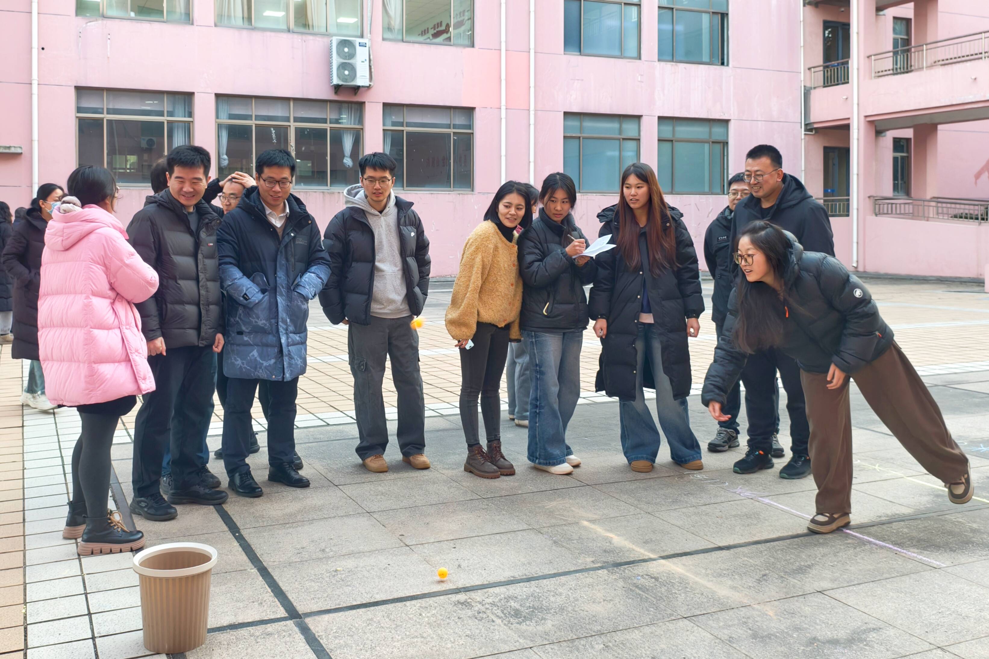 活动在轻松愉快的氛围中拉开帷幕。本次联欢设置了“稳中求胜”托球跑和“精准制导”乒乓球定点投篮两项竞赛项目,兼顾了趣味性、协作性与适度挑战性,旨在让老师们在运动中感受快乐,在协作中深化情谊。活动中,老师们或交流投掷技巧,或互相鼓励,展现出亦师亦友、团结互助的良好风貌。