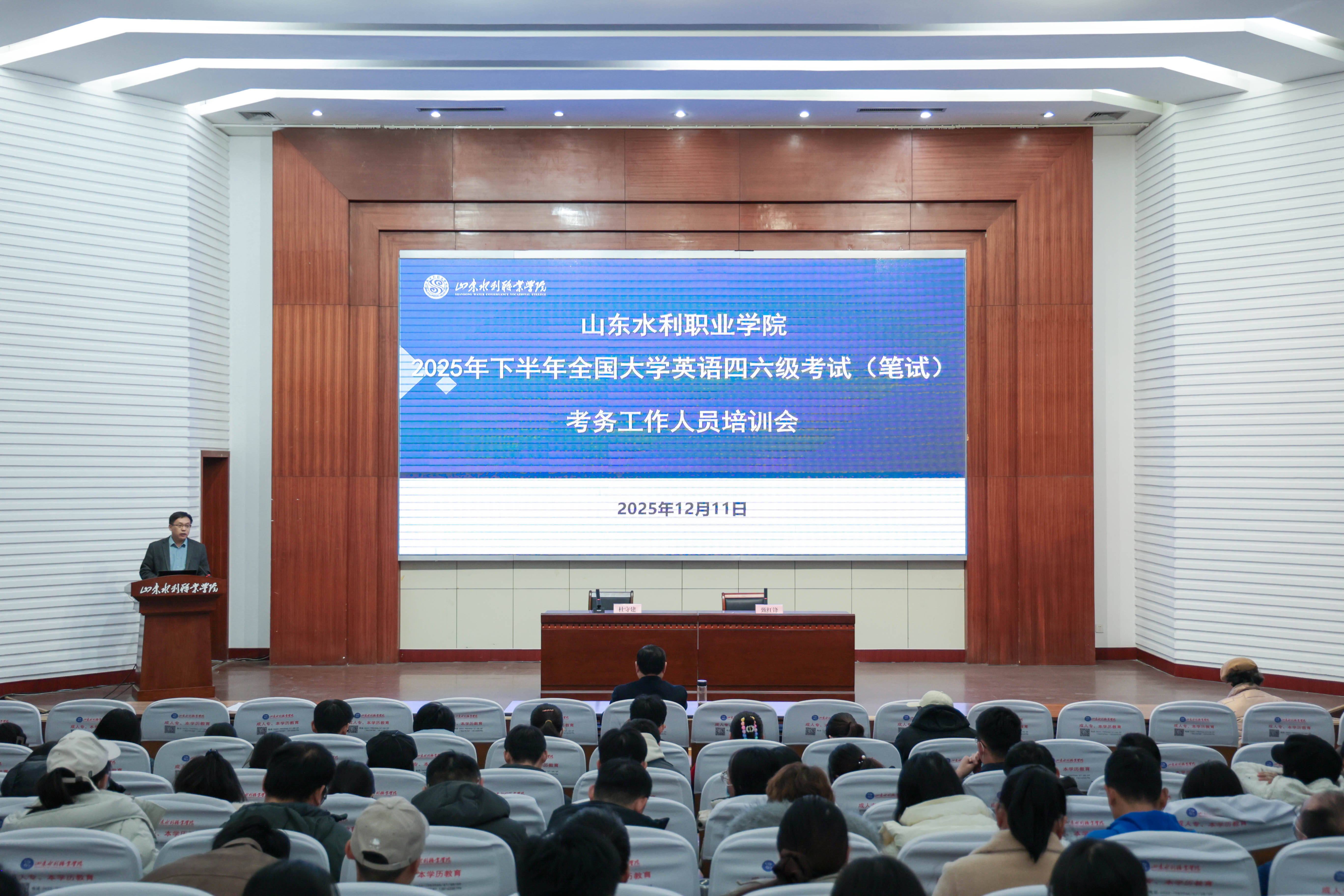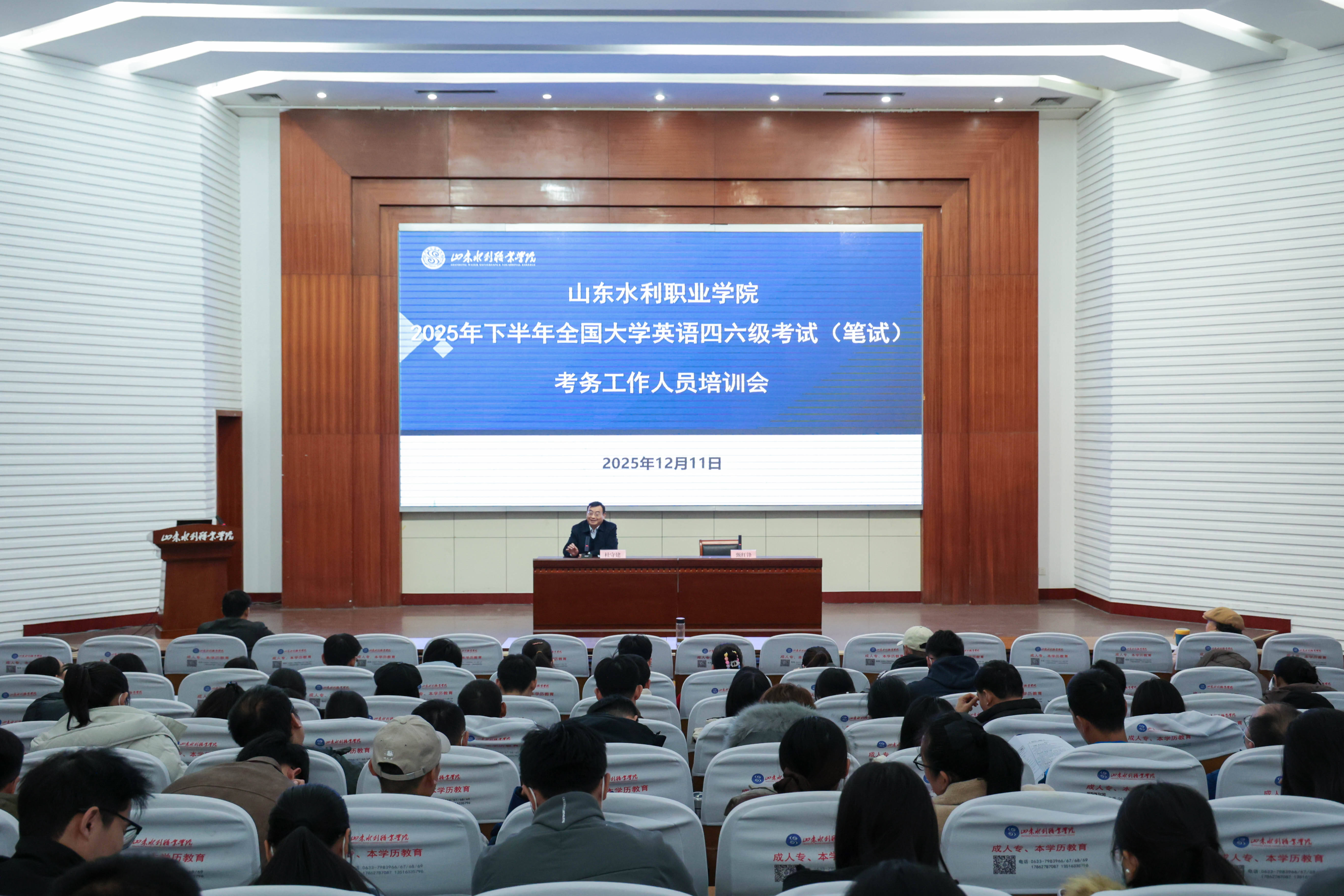 为保障全国大学英语四六级考试平稳有序进行,12月11日下午,学院在学术报告厅召开2025年下半年全国大学英语四六级考试(笔试)考务工作培训会。会议由教务与科研处处长甄红锋主持,党委委员、副院长杜守建出席会议,全体监考教师参加会议。