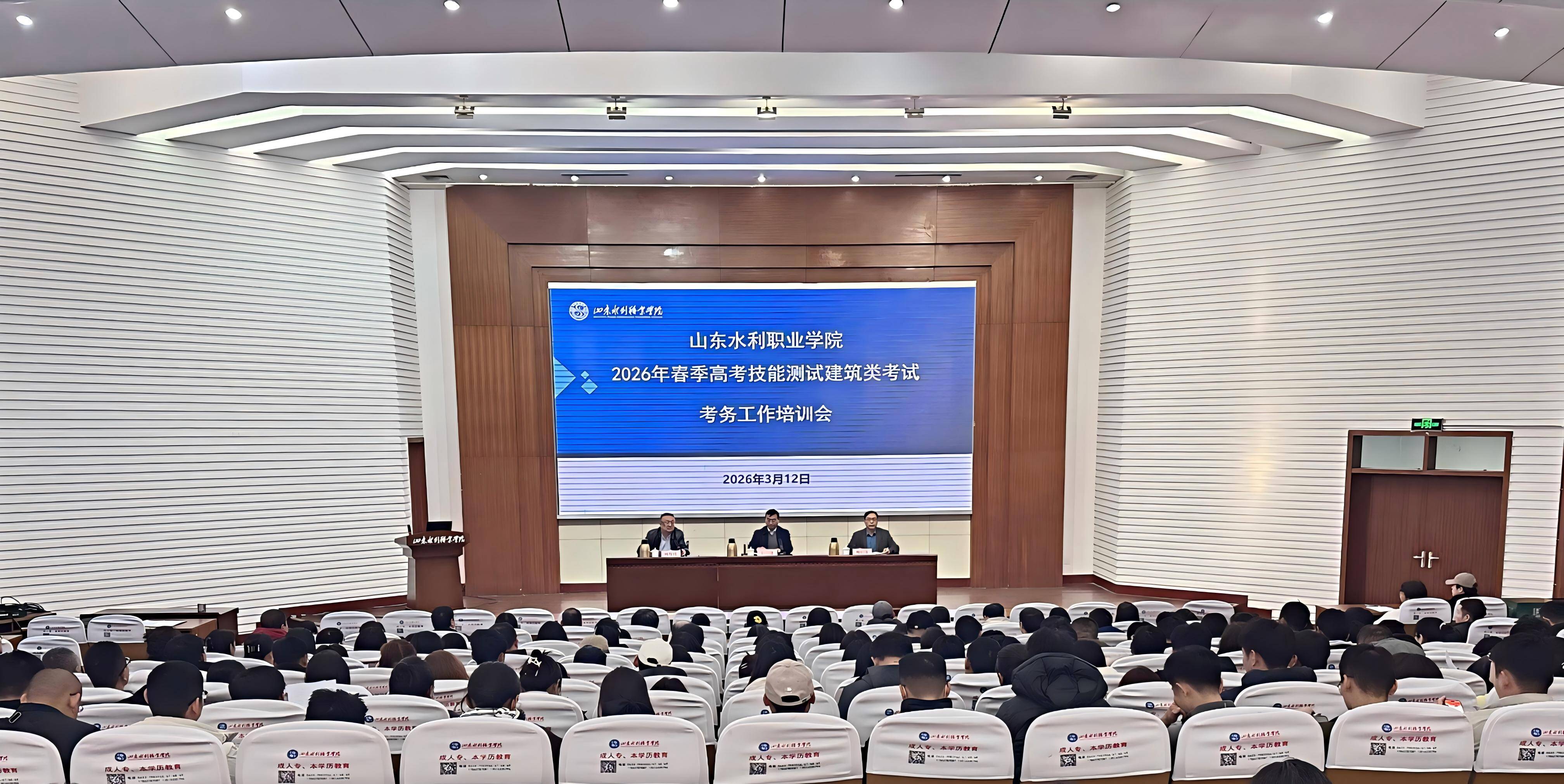 为贯彻落实山东省教育厅春季高考技能测试工作会议精神,确保各项工作规范、有序、顺利进行,3月12日下午,在学术报告厅召开2026年春季高考技能测试建筑类考试考务培训会。学院党委委员、副院长杜守建,教务与科研处处长甄红锋,纪委主任孙保伟,全体考务工作人员参加会议。会议由甄红锋主持。