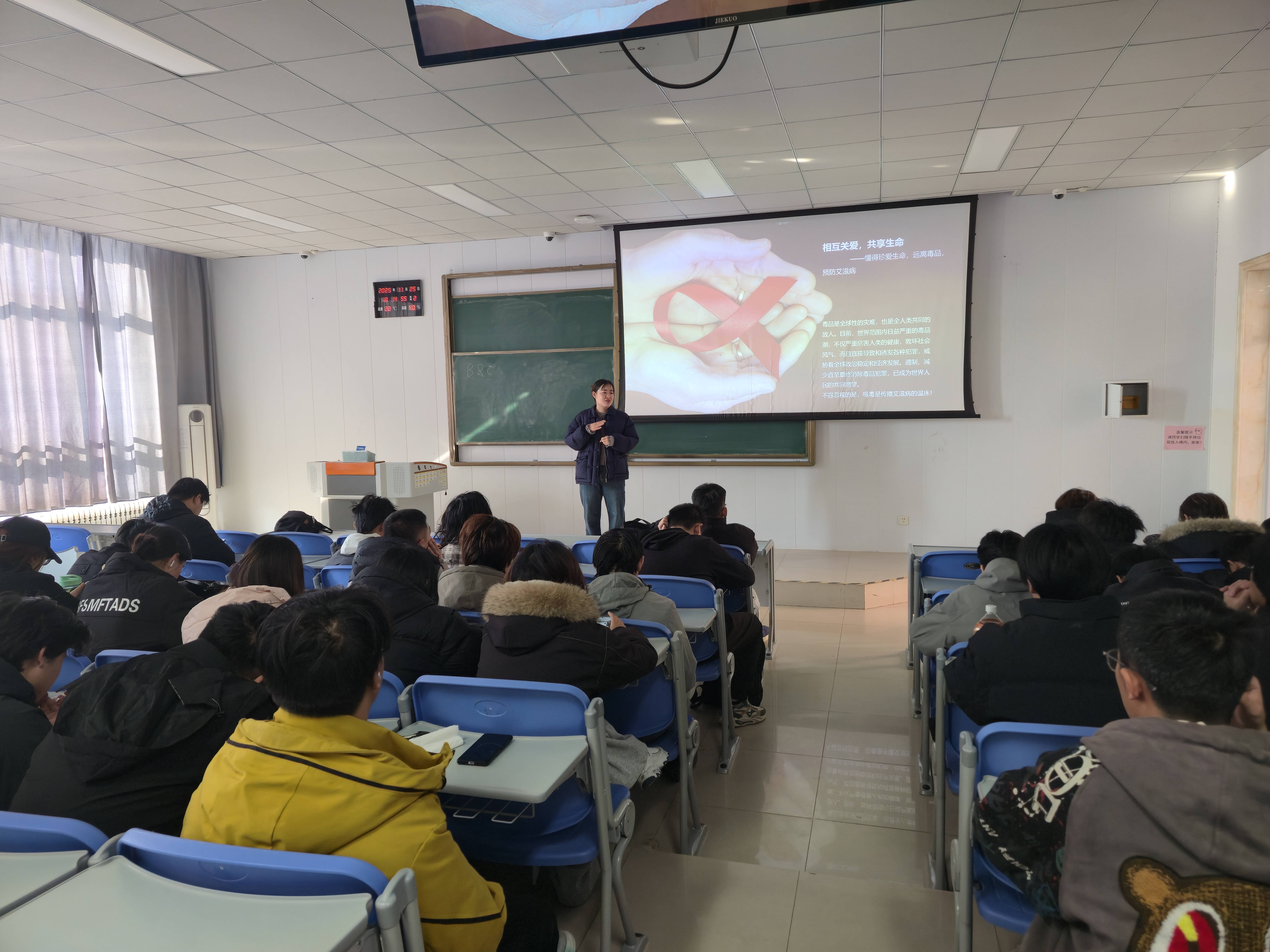 专业领航:专家讲座启心智,防艾理念入人心。12月1日,建筑工程系特邀日照港口医院刘建丽主任,为“防艾”志愿者和在校生开展了一场专业且生动的防艾专题讲座。讲座现场,专家凭借丰富的临床经验和深厚的专业知识,深入浅出地讲解了艾滋病的传播途径、预防方法、检测手段以及治疗进展等内容,让同学们对防艾知识有了更系统、更深入的了解。