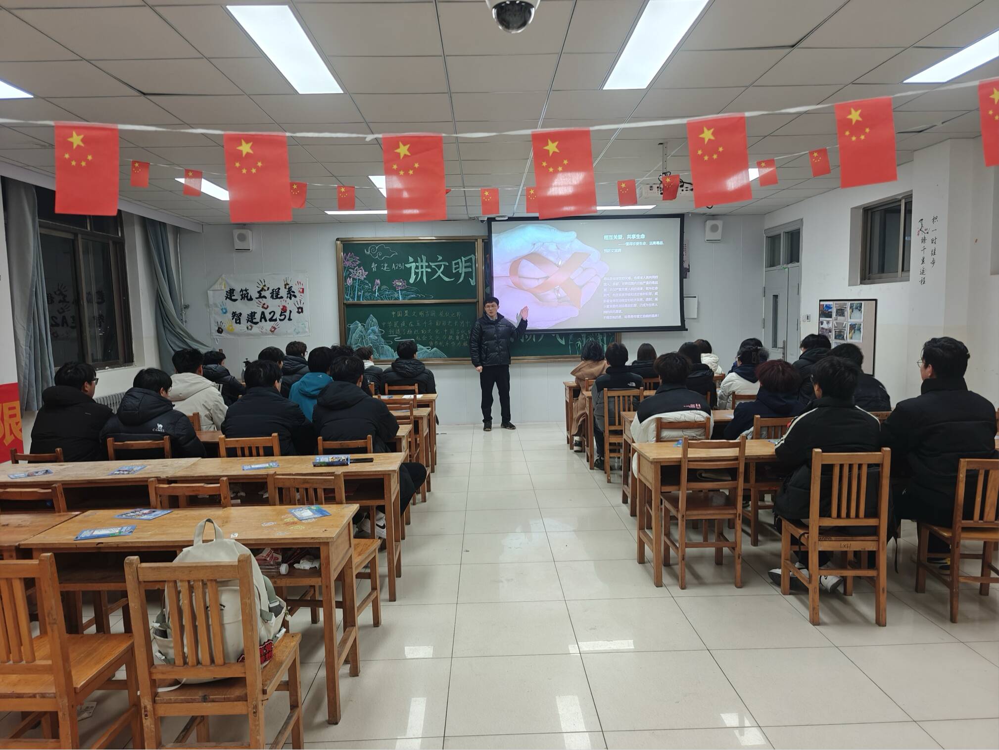 防艾宣传:多元形式,营造浓厚校园氛围。通过打造“防艾”主题宣传栏、张贴防艾公益海报等方式,以醒目的图文直观普及艾滋病传播途径、预防措施等核心知识,在校园内营造了浓厚的防艾氛围。同时,发起黑板报与手抄报设计征集活动,同学们踊跃参与,以笔为媒,创作出一幅幅主题鲜明、创意十足的作品,进一步丰富了防艾宣传形式,激发了同学们参与防艾宣传的热情。        为扩大宣传覆盖面,建工系组织志愿者队伍开展“双线宣传”行动。志愿者们兵分两路,一方面走进周边社区,向居民普及防艾知识,提升社区居民的防艾意识;另一方面深入学生宿舍,针对大学生群体的特点,耐心解答同学们在防艾方面的困惑,破除认知误区,传递健康生活理念。        创新联动:依托实践基地,融合智慧服务。作为“双线宣传”的延伸与创新,建筑工程系依托日照市城市大脑大社会实践基地,积极联动校园防艾力量开展主题宣传。城市大脑工作人员充分认可学生群体的社会参与价值,协助将核心防艾知识点纳入系统传播矩阵。实现了城市智慧服务与校园公益宣传的有机融合,使防艾科普更加贴近市民生活,扩大了防艾宣传的社会影响力,让更多的人了解到防艾知识,共同参与到防艾行动中来。        思辨提升:主题辩论激火花,知识竞赛促掌握。为进一步深化同学们对防艾知识的理解与运用,建工系举办防艾主题辩论赛。围绕“防艾宣传重在知识普及还是观念引导”议题,同学们展开激烈的思想交锋。在辩论过程中,大家各抒己见,引经据典,从不同角度阐述自己的观点,不仅锻炼了思维能力和表达能力,更在辩论中深化了对防艾责任与社会包容的理解。       班级活动:主题班会强认知,自我保护记心间。此外,各班级“预防艾滋,守护青春”为主题开展班会活动。通过观看防艾公益视频、分组讨论、知识竞赛等形式,同学们在互动交流中深化了对高危行为的认知,明确了自我保护的重要性。        此次防艾系列活动的开展,是建筑工程系落实校园健康教育工作的重要举措。通过专家讲座、志愿宣传、创新联动、思辨提升和班级活动等一系列丰富多彩的形式,有效提升了同学们的防艾知识与自我保护能力。未来,建筑工程系将持续把安全教育融入日常育人工作,引导同学们养成健康文明的生活方式,共同筑牢校园防艾防线,让青春在无“艾”守护中绽放光彩。