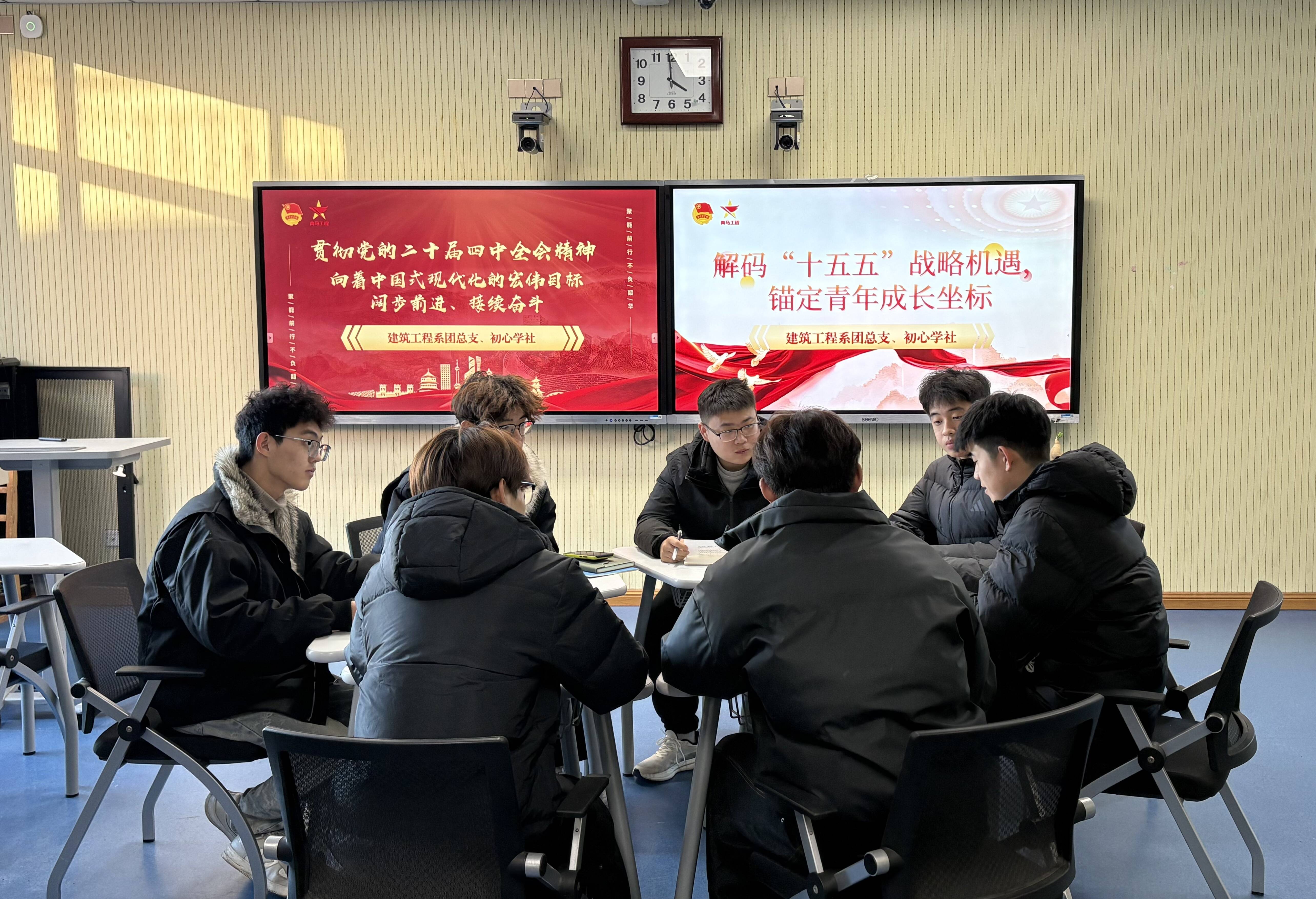 2025年12月25日,建筑工程系团总支联合思政部初心学社,以“贯彻党的二十届四中全会精神,向着中国式现代化的宏伟目标阔步前进、接续奋斗”为主题,面向2025-2026学年青马工程学员开展了一场理论与实践深度融合的专题团课。活动通过专家解读、案例剖析、行动倡议等环节,引导青年学子深刻把握国家发展蓝图与青年使命担当,为推进中国式现代化凝聚青春智慧与力量。