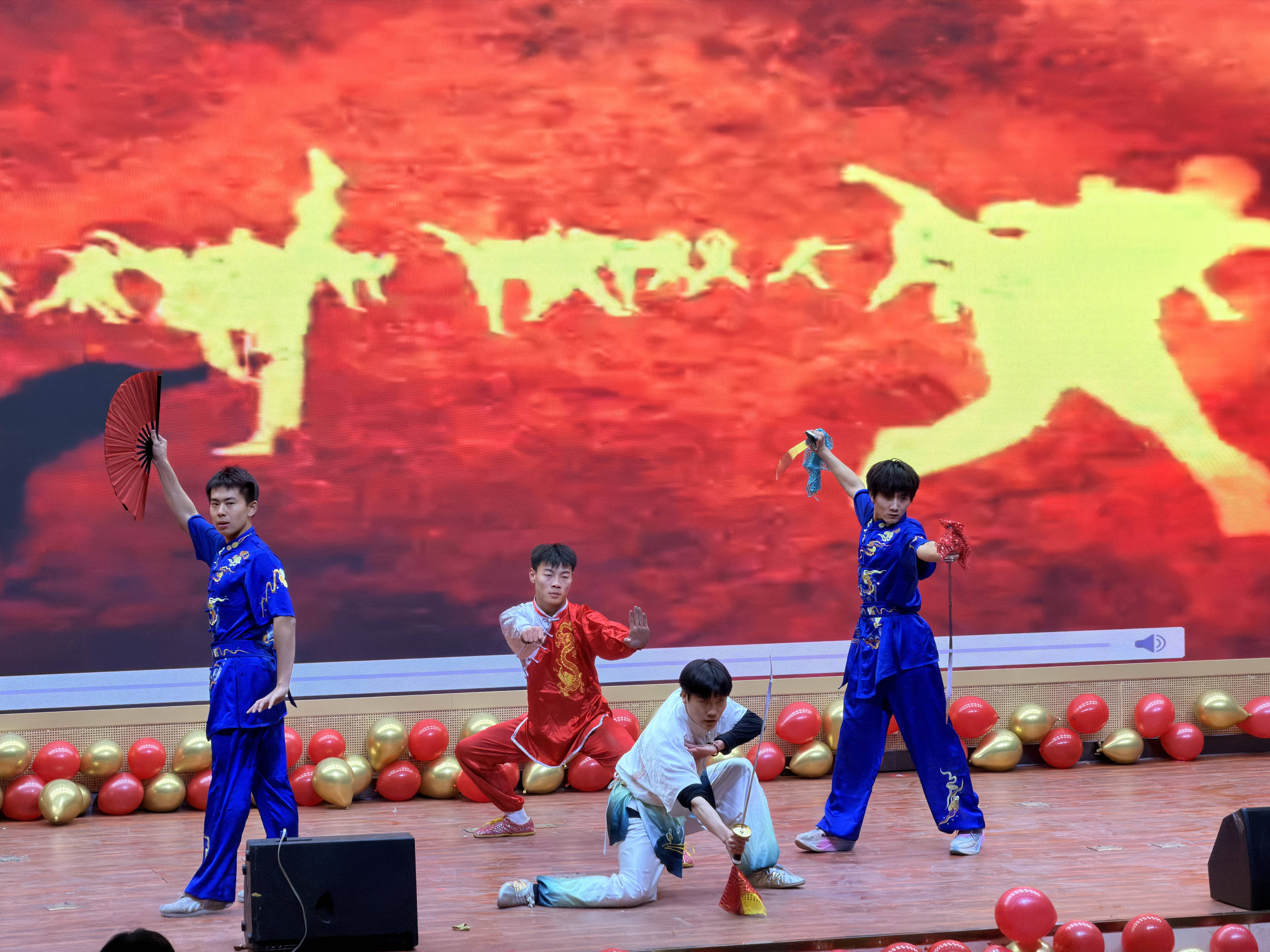 随着节目推进,晚会气氛不断升温。街舞《Street Jazz》活力十足;歌曲《朵》以温柔的嗓音与唯美舞台营造出静谧氛围;朗诵《灯塔》情感真挚,“匠心筑梦,薪火相传”的誓言铿锵有力;武术《中华武魂》刚劲有力,尽显中华武术魅力;藏舞《青年牧民锅庄》民族特色浓郁,展现文化交融之美;街舞《Breaking Flow》以高难度动作再次点燃全场。