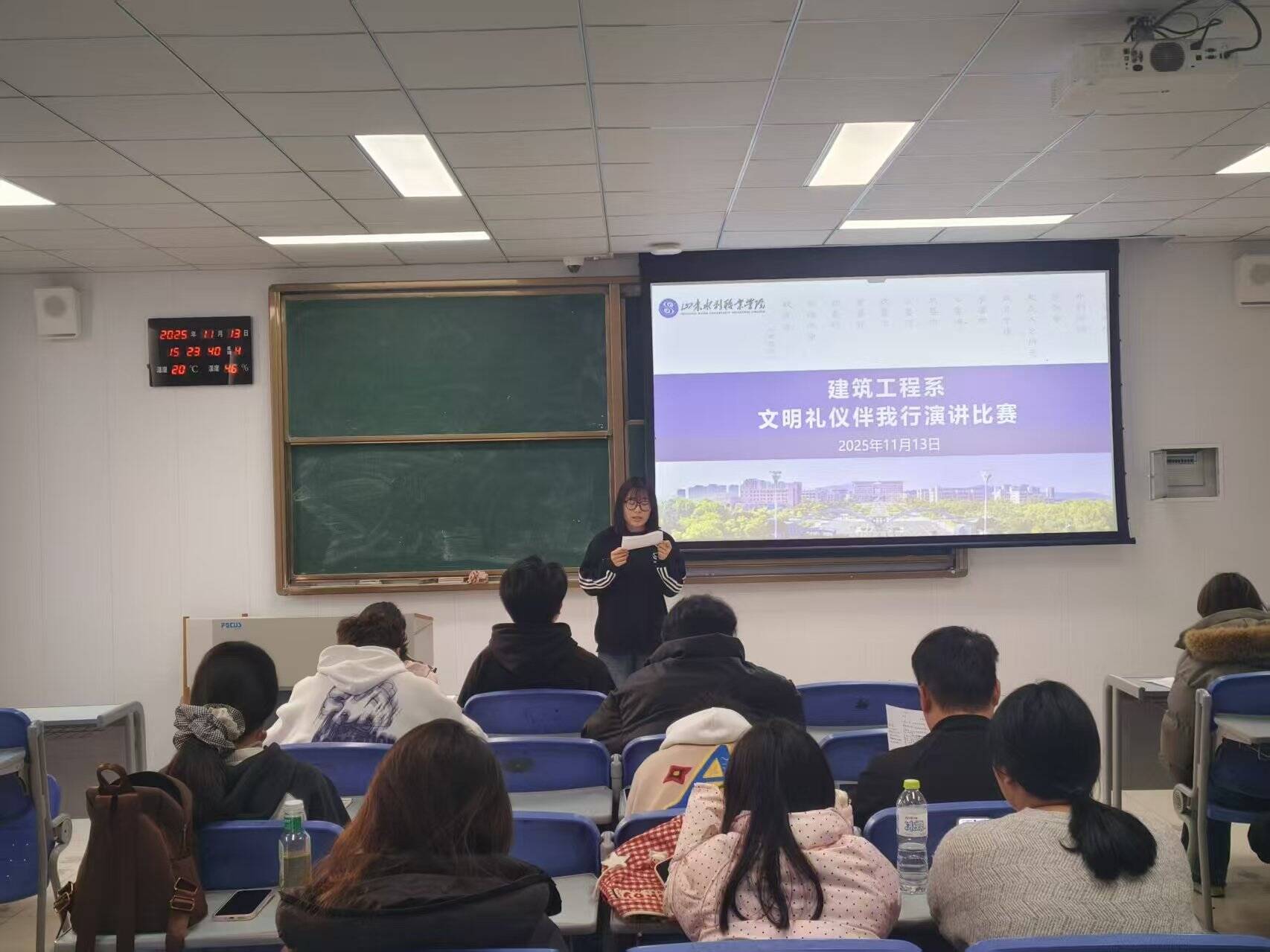 为传承中华优秀传统礼仪文化,提升学生文明素养与语言表达能力,2025年11月24日,建筑工程系文明礼仪主题演讲比赛在海晏楼4208教室举行。13名参赛选手同台竞技,以语言为载体传递礼仪力量。