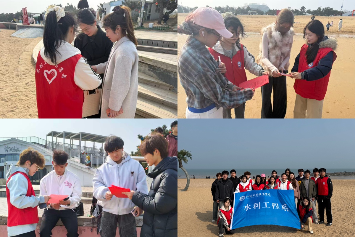 躬身实践,守护蔚蓝海岸。学生前往海边开展节水护水实践行动。志愿者分组清理海岸线垃圾,观察近岸水质状况,并向过往游客宣传节水护水理念,倡导珍惜每一滴水、守护海洋生态。在实际行动中加深了对水资源保护的责任感。