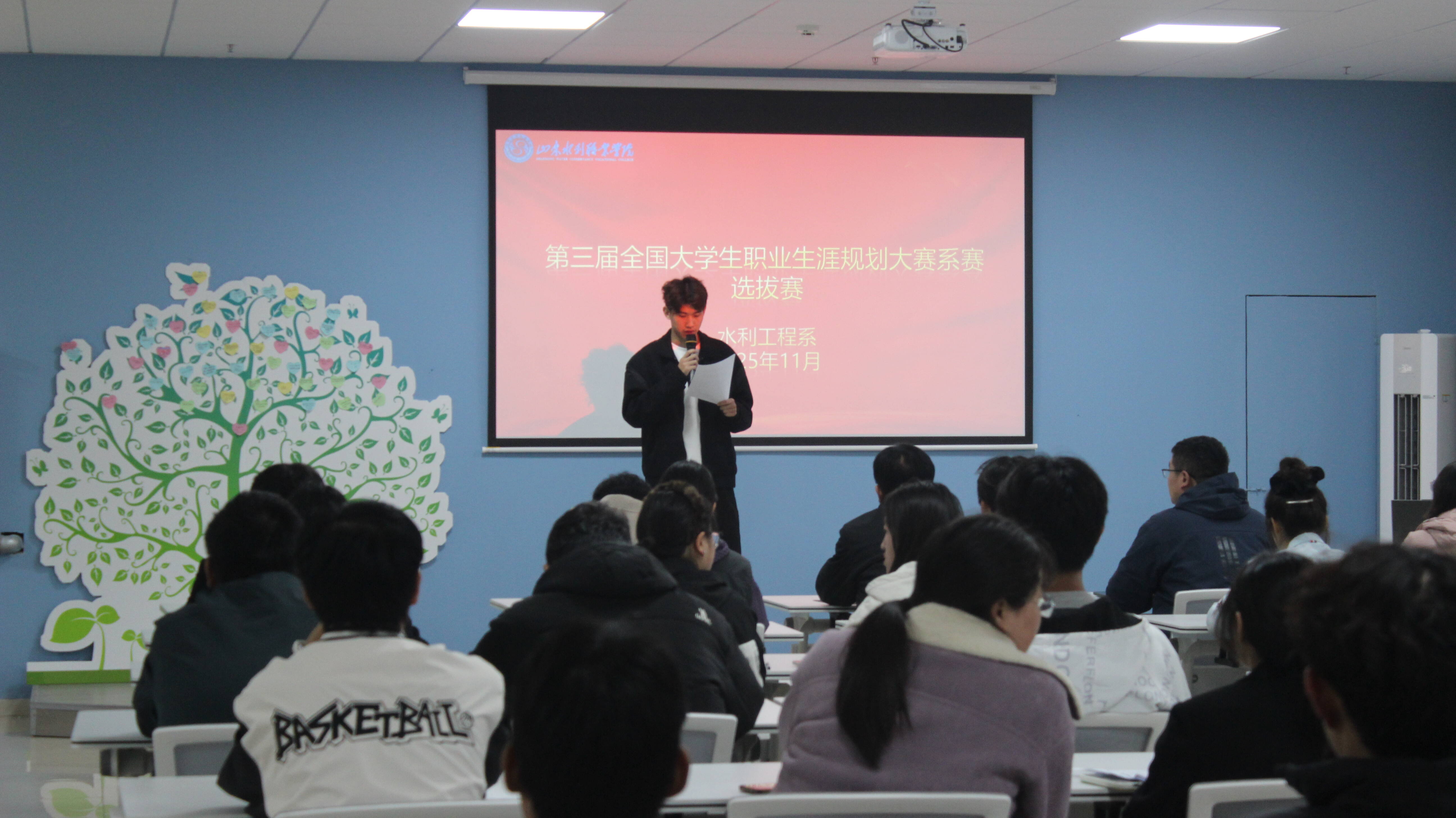 11月16日晚,山东水利职业学院水利工程系在就业赋能中心成功举办全国大学生职业生涯规划大赛系内选拔赛。系党总支副书记、学工秘书及全体辅导员出席并担任评委。