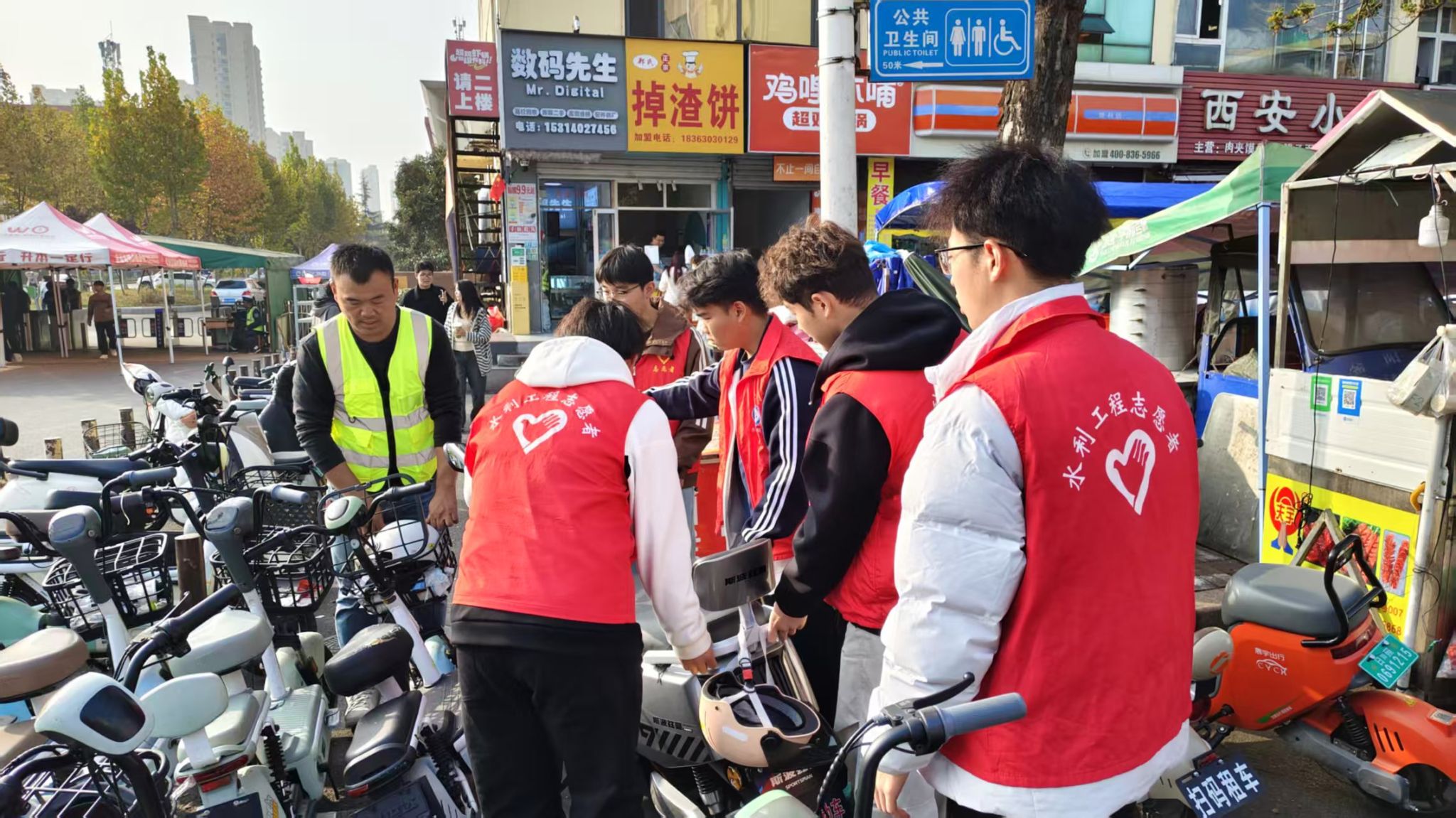 开展“文明骑行,平安校园”电动车专项整治行动。为进一步规范校园周边交通秩序,提升学生交通安全意识,水利工程系响应辖区交警中队号召,发起“文明骑行,平安校园”电动车专项整治行动。行动中,交警与志愿者共同参与,重点整治电动车违规停放、不佩戴安全头盔等行为,通过现场劝导、宣传教育与警示教育相结合的方式,引导学生自觉遵守交通规则,共建安全、有序、文明的校园交通环境。