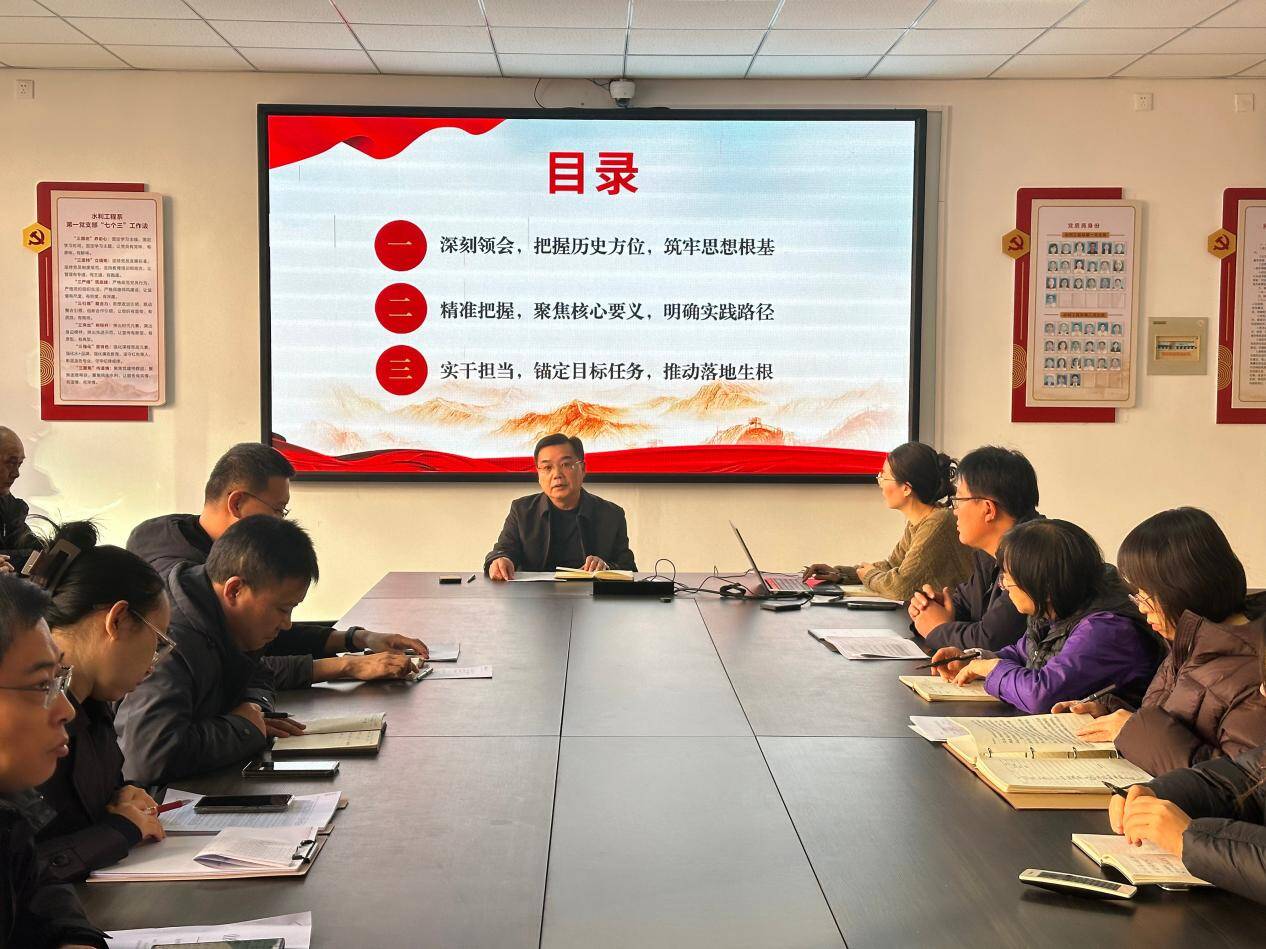 程兴奇围绕三个方面对全会精神作系统解读:在铸牢思想根基上,强调要深刻把握全会历史方位与重大意义,领悟“两个确立”决定性意义,为水利事业发展提供政治保障;在明确实践路径上,结合水利行业实际,解读全会治水相关部署,要求找准全会精神与教学科研、项目建设等核心工作的结合点;在推动落地生根上,提出要强化责任担当、深化党建与业务融合、锤炼过硬作风,将全会部署转化为水利事业高质量发展的实际成果。