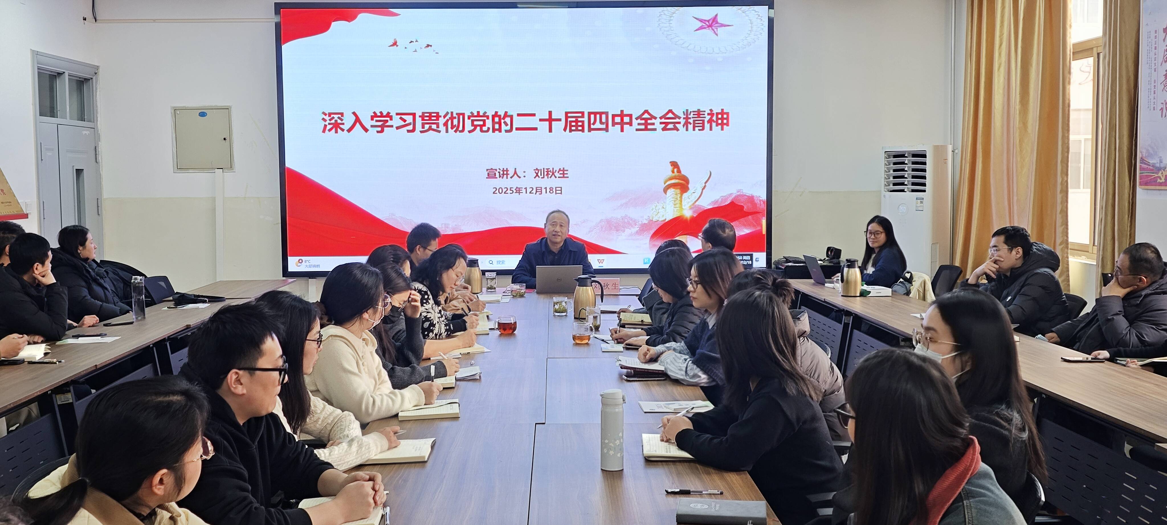 为深入学习贯彻党的二十届四中全会精神,有效落实立德树人根本任务,12月18日,学院党委委员、副院长刘秋生作深入学习贯彻党的二十届四中全会精神专题宣讲,商务管理系全体教职工参会。