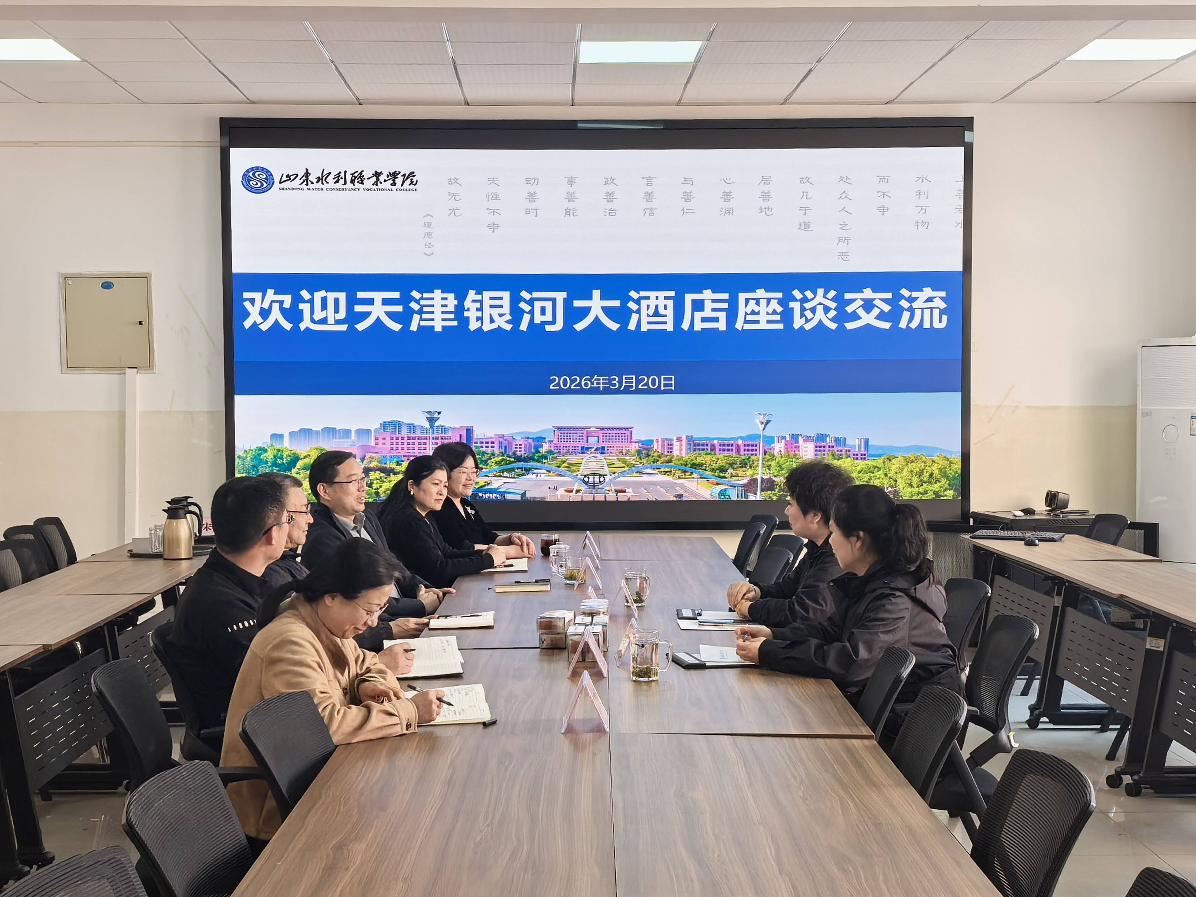 3月20日,天津银河大酒店总经理助理刘金侠一行到访商务管理系,双方举行产教融合座谈交流会。商务管理系党总支书记刘世良、主任马斌及系部相关教师参加座谈,围绕深化校企合作、推进学生实习就业与专业建设提质增效展开深入交流。