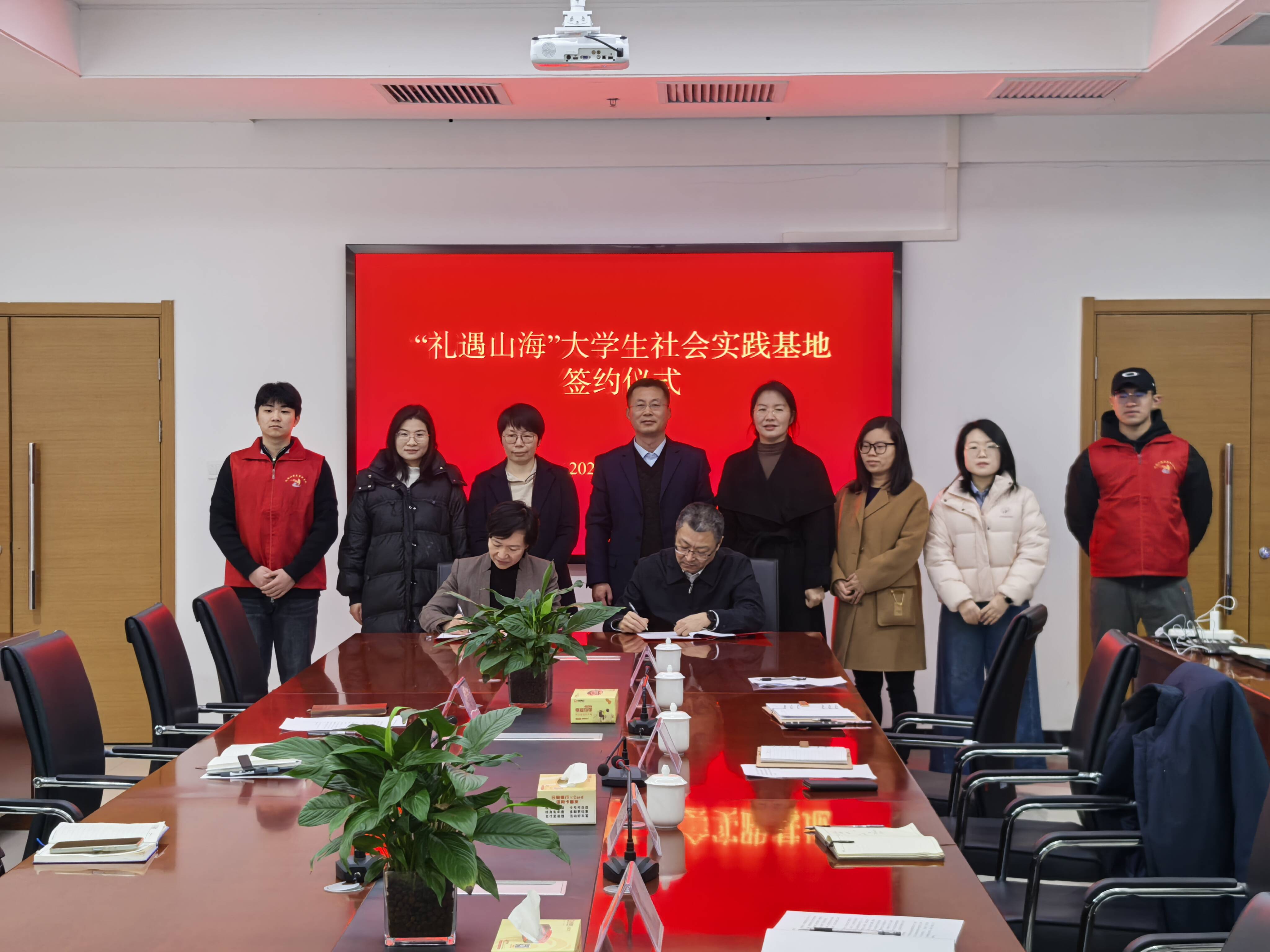 致辞结束后,双方领导共同签署了《“礼遇山海”大学生社会实践基地合作框架协议》。签约仪式后,举行了“礼遇山海”大学生社会实践基地揭牌仪式,双方领导共同为基地揭牌,标志着我校与山海天旅游度假区文旅局的校地合作迈入实质性阶段。