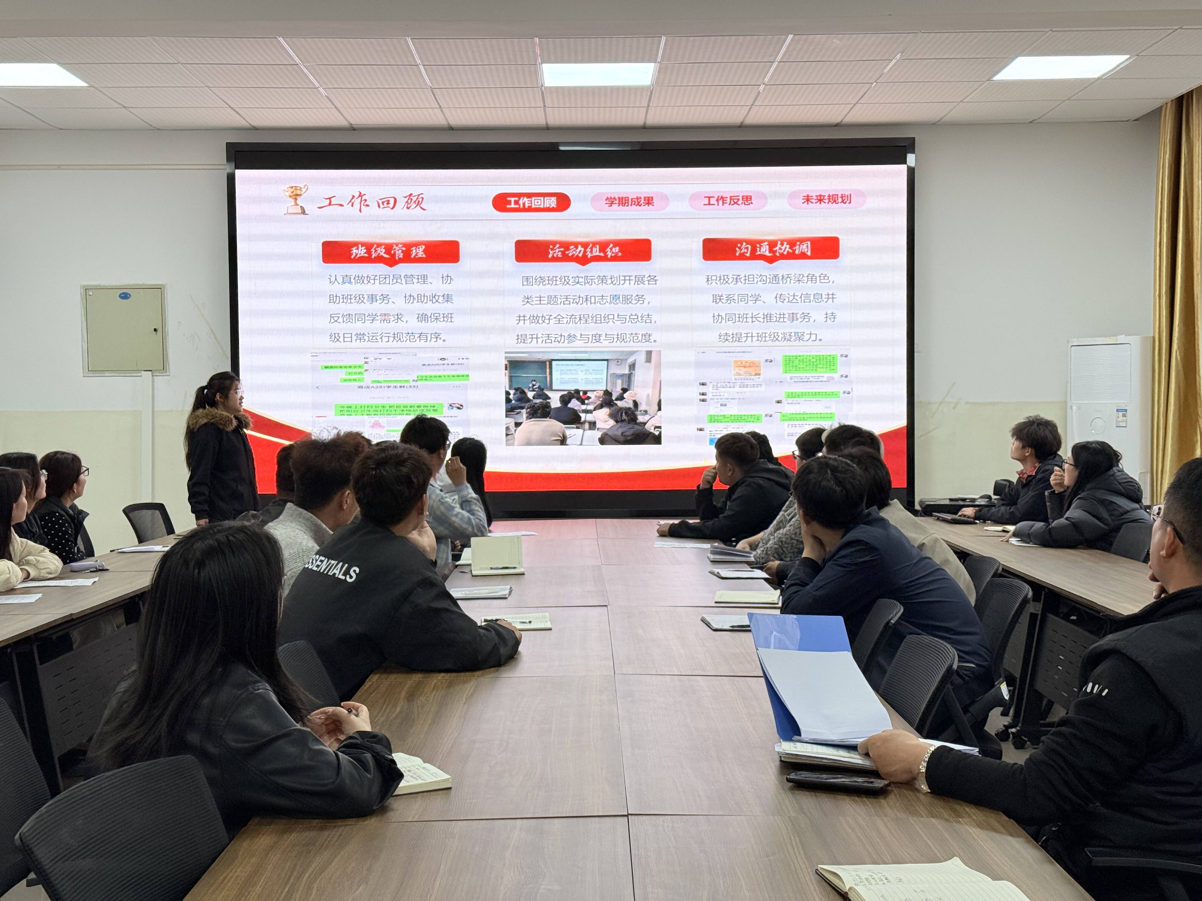 论坛伊始,各班级团支书依次进行工作述职,围绕团支部思想建设、组织建设、活动开展、团员管理、志愿服务等核心工作,全面梳理工作中的成效与亮点,深刻剖析存在的问题与不足,并结合支部实际,明确了下一步工作思路与改进方向。各位团支书思路清晰、重点突出,展现了新时代青年学生骨干的责任与担当。最后,商务管理系党总支副书记作总结讲话,他对各团支部的工作成效给予充分肯定,并进一步强调,团支书作为基层团支部的核心骨干,是连接系部与青年团员的重要桥梁纽带,希望全体团支书以此次论坛为契机,进一步强化责任担当、锤炼履职本领,用心用情服务青年团员成长。