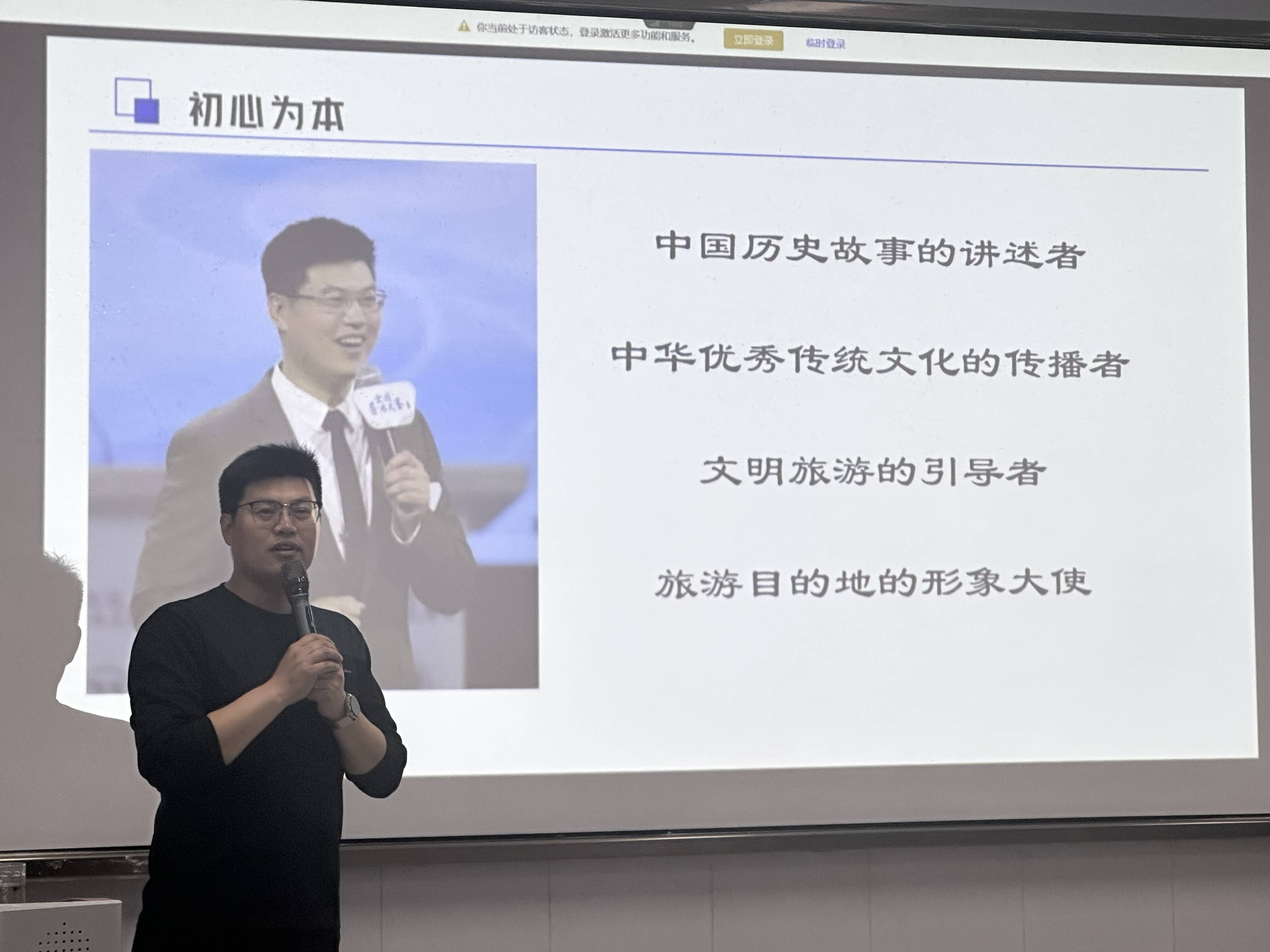 讲座中,胡圣才老师以初心为本、能力为基、创新为翼、坚守为魂为核心框架,结合多年一线从业与竞赛指导经验,引导学生破除导游职业偏见,树立新时代文旅从业者正确认知;聚焦讲解技能、创作能力、语言表达、综合服务四大核心能力,系统传授导游职业核心本领,助力学生打造硬核专业实力;紧跟文旅行业数字化、研学化、体验化发展新趋势,鼓励学生主动拥抱新媒体传播、研学旅行、红色文旅等新业态,强化创新思维与应急处置能力;同时强调恪守职业操守、坚持诚信从业,传承旅游行业优良传统与服务精神。
