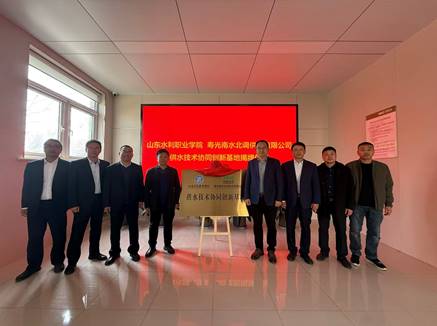 11月6日上午,山东水利职业学院与寿光南水北调供水有限公司在双王城泵站隆重举行“供水技术协同创新基地”挂牌仪式。学院副院长林艳斌、寿光南水北调供水有限公司党支部书记兼总经理肖玉东、中国水务投资集团有限公司山东区域总部总工程师张坤、以及学院产教融合发展中心(创新创业学院)、水利工程系相关负责人出席活动。