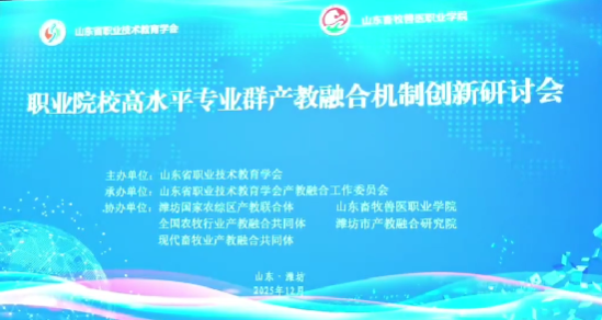 山东畜牧兽医职业学院党委书记张刚分享了学校在校企命运共同体、产业学院、生产性实训基地及国家级市域产教联合体建设方面的“山牧实践”。在专家报告环节,田克美、石忠、霍丽娟等分别作专题报告,从理论逻辑、政策路径、区域实践等角度探讨产教融合推动职业教育与区域经济协同发展的可行路径。