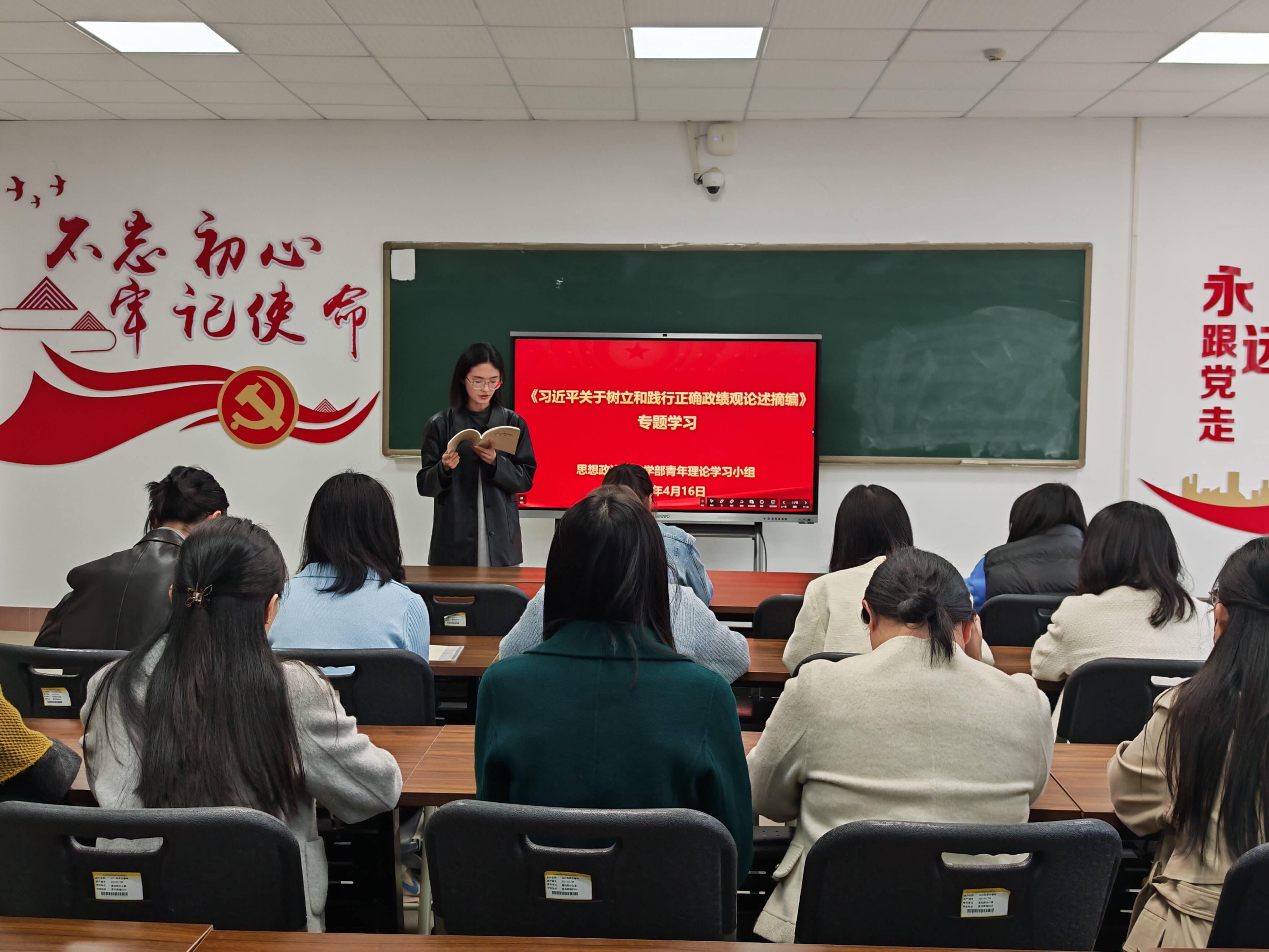 为引导广大青年教师筑牢思想根基、强化使命担当,4月16日,思想政治课教学部青年理论学习小组组织青年教师专题学习《习近平总书记关于树立和践行正确政绩观论述摘编》,推动正确政绩观入脑入心,为立足岗位担当作为注入青春动能。