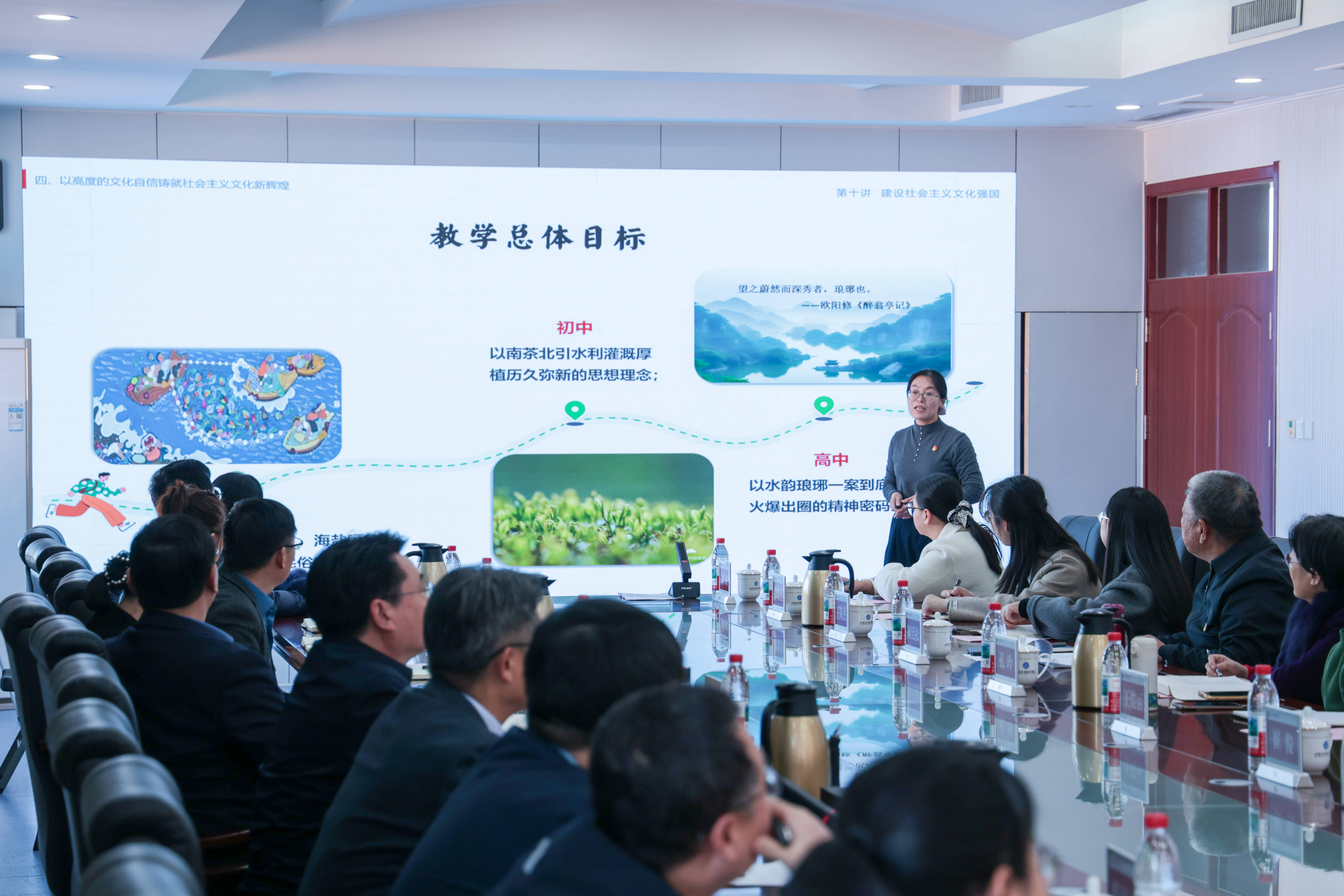 备课会上,孙珊珊老师围绕用好统编教材、建设在线课程、强化师资队伍、提升育人质量等十个方面介绍了“习近平新时代中国特色社会主义思想概论”课程建设情况;崔俊老师以“赓续中华文脉,铸就社会主义文化新辉煌”为题进行了第十章第四节“铸就社会主义文化新辉煌”的说课展示;王萍老师从坚持政治引领、推动内容转化、强化问题导向、讲清理论渊源四个方面分享了如何上好“习近平新时代中国特色社会主义思想概论”课。