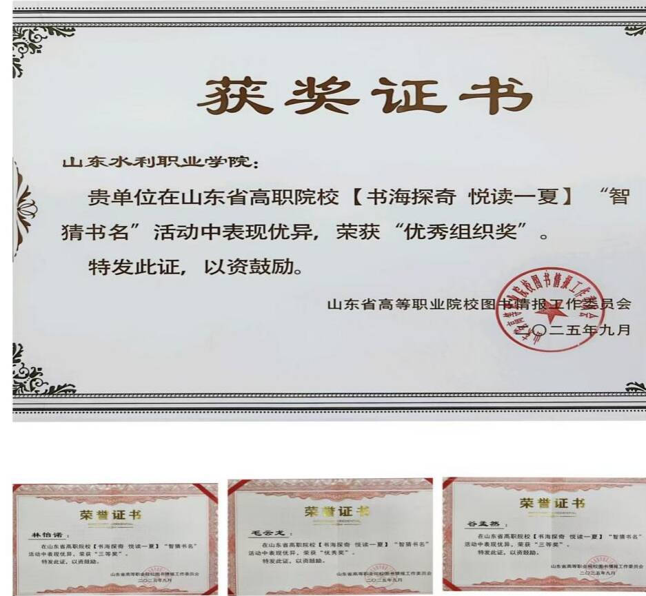我校图书馆积极组织学生参与,学子们凭借扎实的知识储备与敏捷的思维能力,在比赛中表现优异,共斩获3项个人奖项。其中,林怡诺、谷孟然两名同学荣获“三等奖”,毛云龙同学荣获“优秀奖”,学校同时获评“优秀组织奖”。展现了我校在推动校园阅读文化建设方面的显著成效。