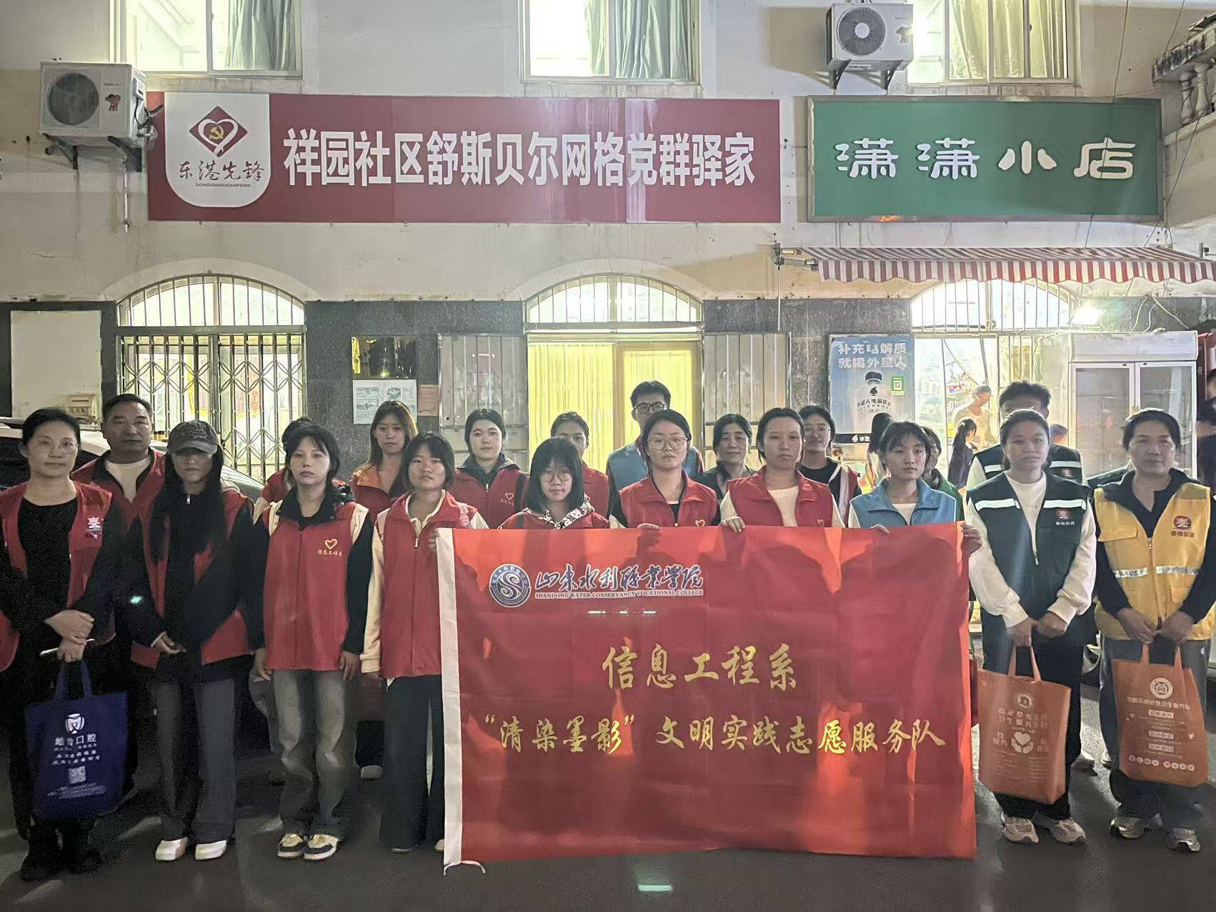10月16日,信息工程系“清染墨影”文明实践志愿服务队联合祥园社区开展“政策入户送服务 校社联动暖民心”志愿服务活动,以青春力量守护社区平安,推动校社联动共治走深走实。