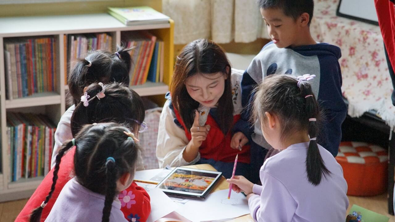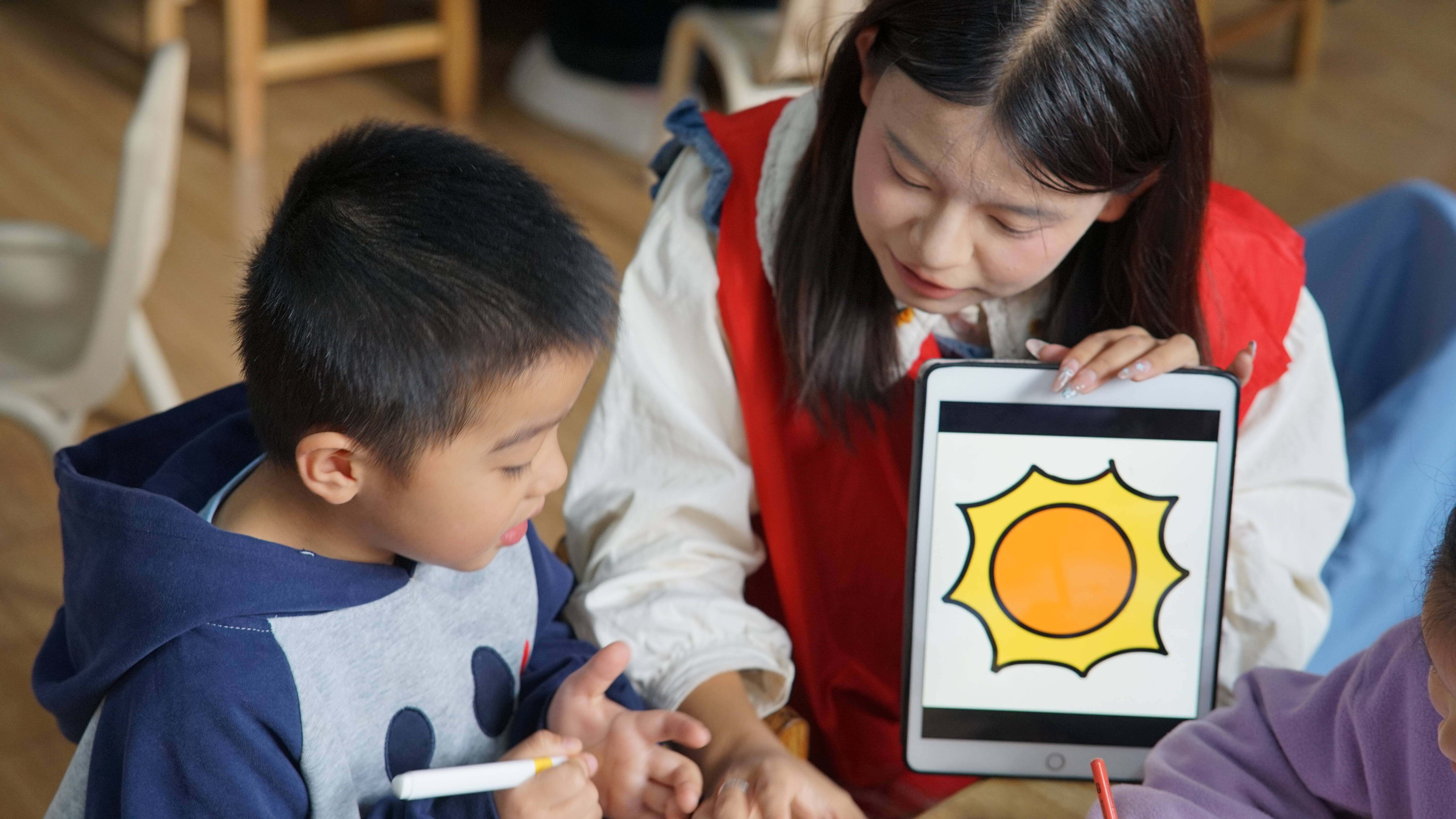 活动伊始,幼儿园老师为孩子们生动讲解了重阳节的习俗,通过生动的故事和有趣的动画,深入浅出地讲解了重阳节的悠久历史。随后,信息工程系志愿者们化身“小老师”,与孩子们“一对一”结对,围绕“重阳敬老”主题,以“我眼中的爷爷奶奶”或“秋天的祝福”为题展开创作,正式开启了温暖的绘画之旅。