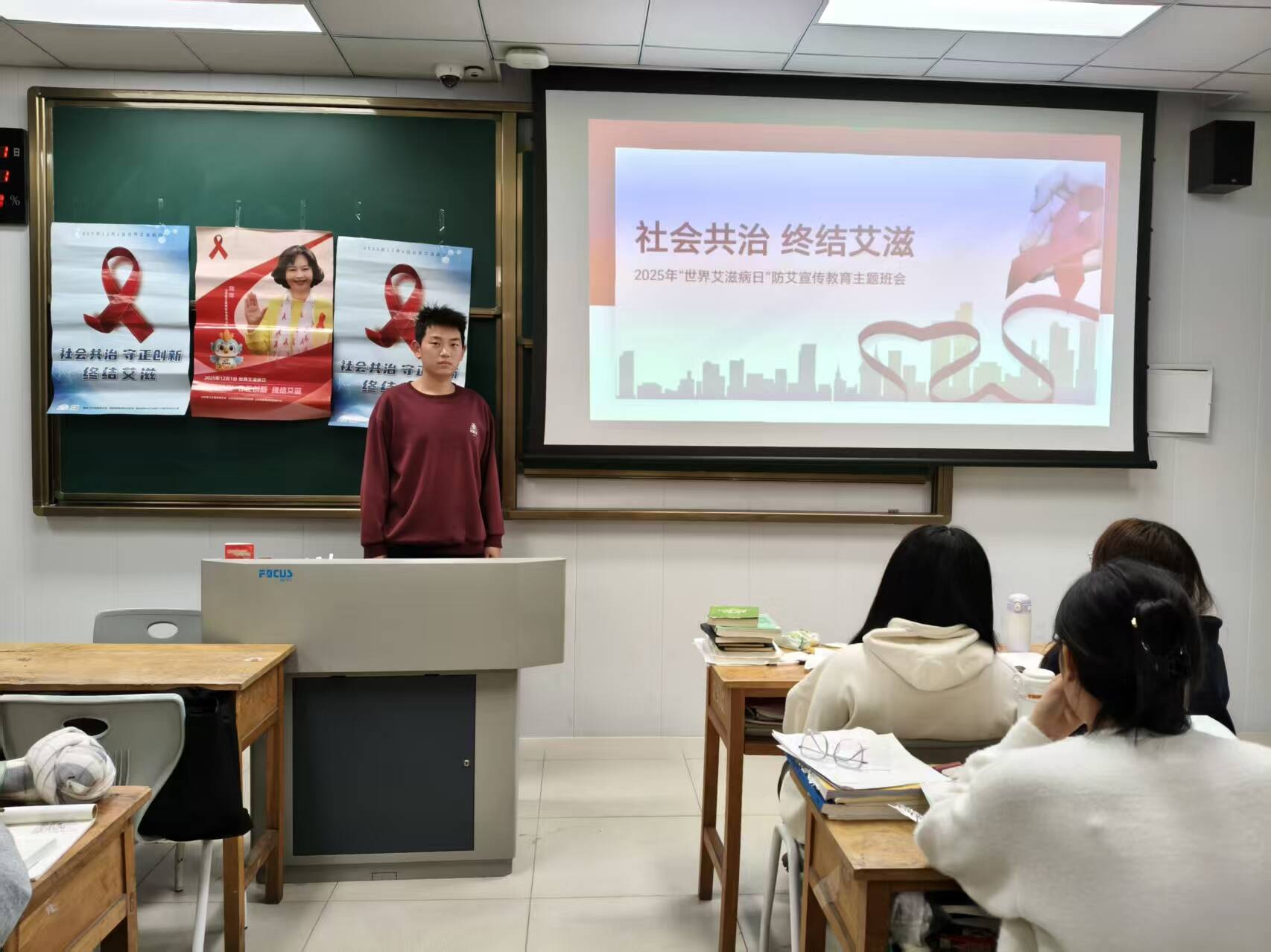 系部面向全体学生举办了“科学防艾,同力终结”主题班会。辅导员结合青少年日常生活场景,引用疾控部门权威数据,重点讲解艾滋病传播途径与预防措施,引导学生树立正确的防病观念。班会结束后,同学们共同观看了相关主题电影《最爱》。