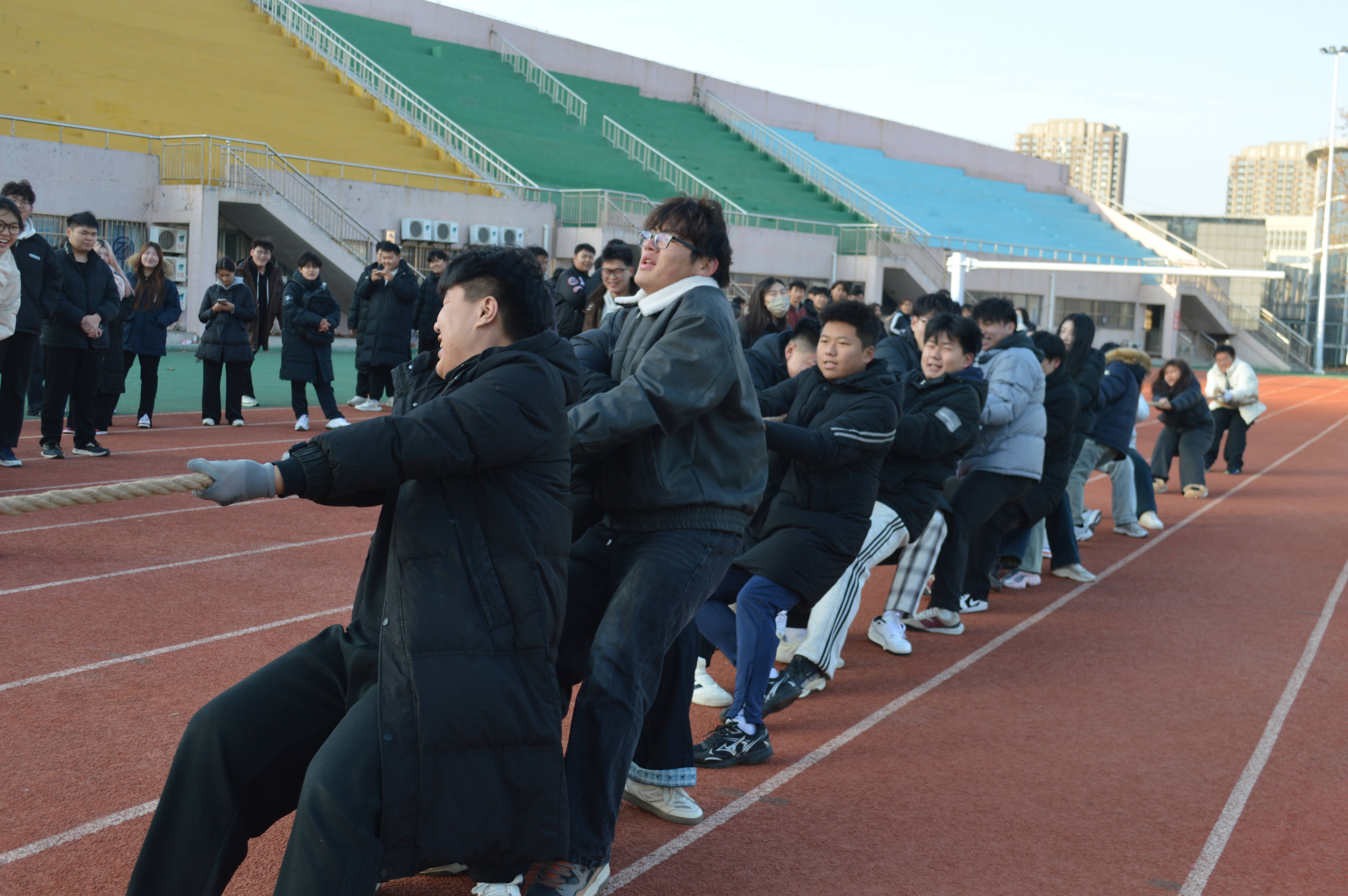 为深入推动阳光体育运动,丰富校园文化生活,增强学生体质,培养团队协作精神,12月11日下午,学院第三届大学生冬季体育节拔河比赛在田径场火热举行。来自全校七系一部的八支代表队积极参与,展现了水院学子昂扬奋进、团结拼搏的精神风貌。