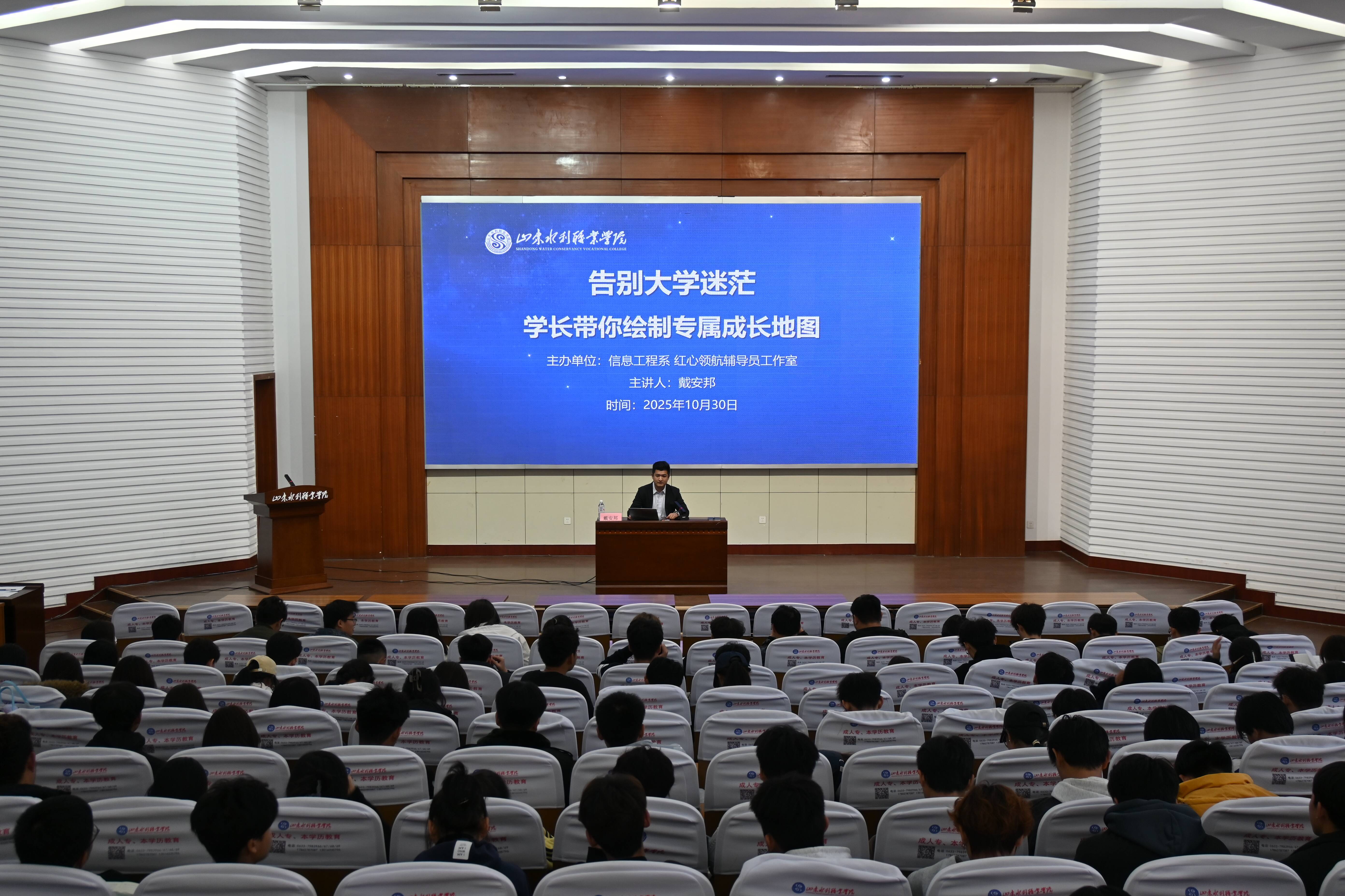 为引导2025级新生科学规划大学生活,明确成长方向,10月30日,信息工程系邀请优秀校友戴安邦回校开展题为“告别大学迷茫,学长带你绘制专属成长地图”的专题分享会。戴安邦校友结合自身从水院学子到青年企业家、公益志愿者的多元经历,围绕“个人成长”“创新与公益”和“职业经验”三大主线,分享了如何通过积极参与志愿服务、创新创业大赛与社会实践,逐步积累经验、拓展能力,并鼓励大家在大学期间“多实践、多参赛、多考证”,逐步构建个人作品集与能力证明,为未来就业或创业筑牢基础。