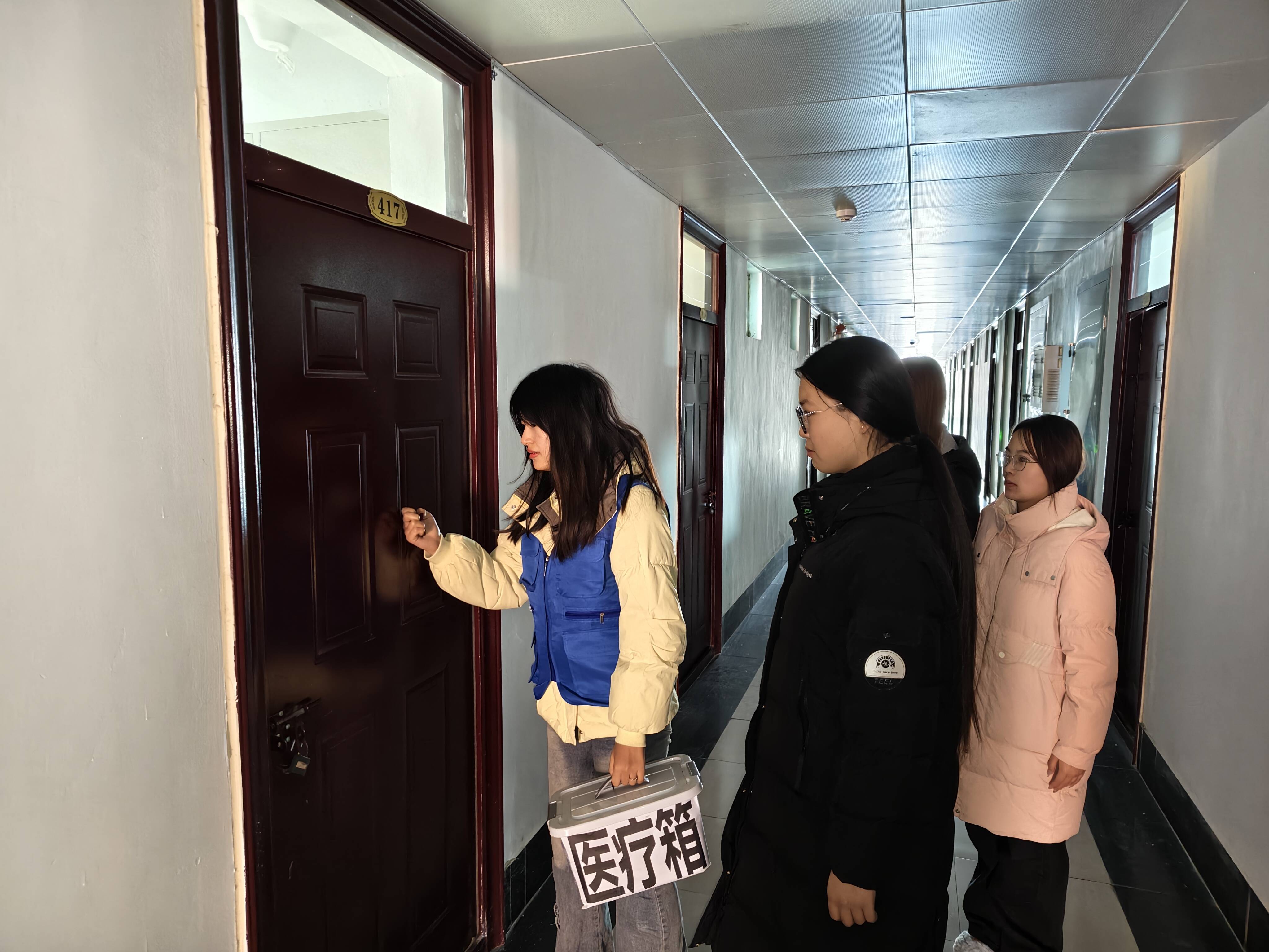 水蓝先锋应急救援志愿服务队是一支由学生自主组建的志愿队伍,队员们怀揣着服务师生、守护安全的初心,经过专业培训具备基础应急救援能力。此次活动中,志愿服务队全程陪同社区服务部开展宿舍检查工作,其核心职责是应对检查过程中可能出现的各类突发状况。无论是学生突发晕倒、低血糖等健康问题,还是宿舍内出现的小型火情隐患,应急志愿服务队都能第一时间响应,提供及时有效的应急处置和救助服务,为宿舍检查工作的顺利推进筑牢安全防线。