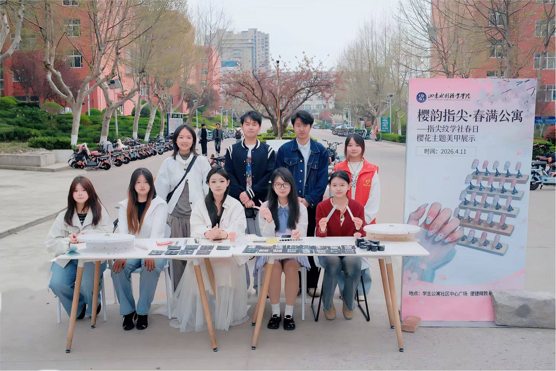 为展示学生实践成果,丰富公寓社区文化生活,提升学生实践能力,4月11日,信息工程系指尖纹学社在学生公寓社区德胜园成功举办“樱韵指尖·春满公寓”春日樱花主题美甲展示市集活动,以特色实践形式展现学社风采,丰富校园春日文化,吸引了众多学生参与,圆满完成各项预期目标。
