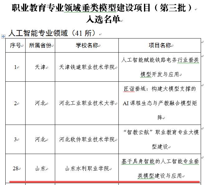 近日,教育部职业教育发展中心公布了职业教育专业领域垂类模型建设项目(第三批),我校信息工程系申报的“基于具身智能的人工智能专业垂类模型建设与应用”项目成功入选。这是我院在人工智能赋能职业教育领域取得的又一重要突破,标志着学院在推动人工智能技术与职业教育深度融合方面迈入新阶段,为提升人才培养质量、服务区域产业发展注入新动能。