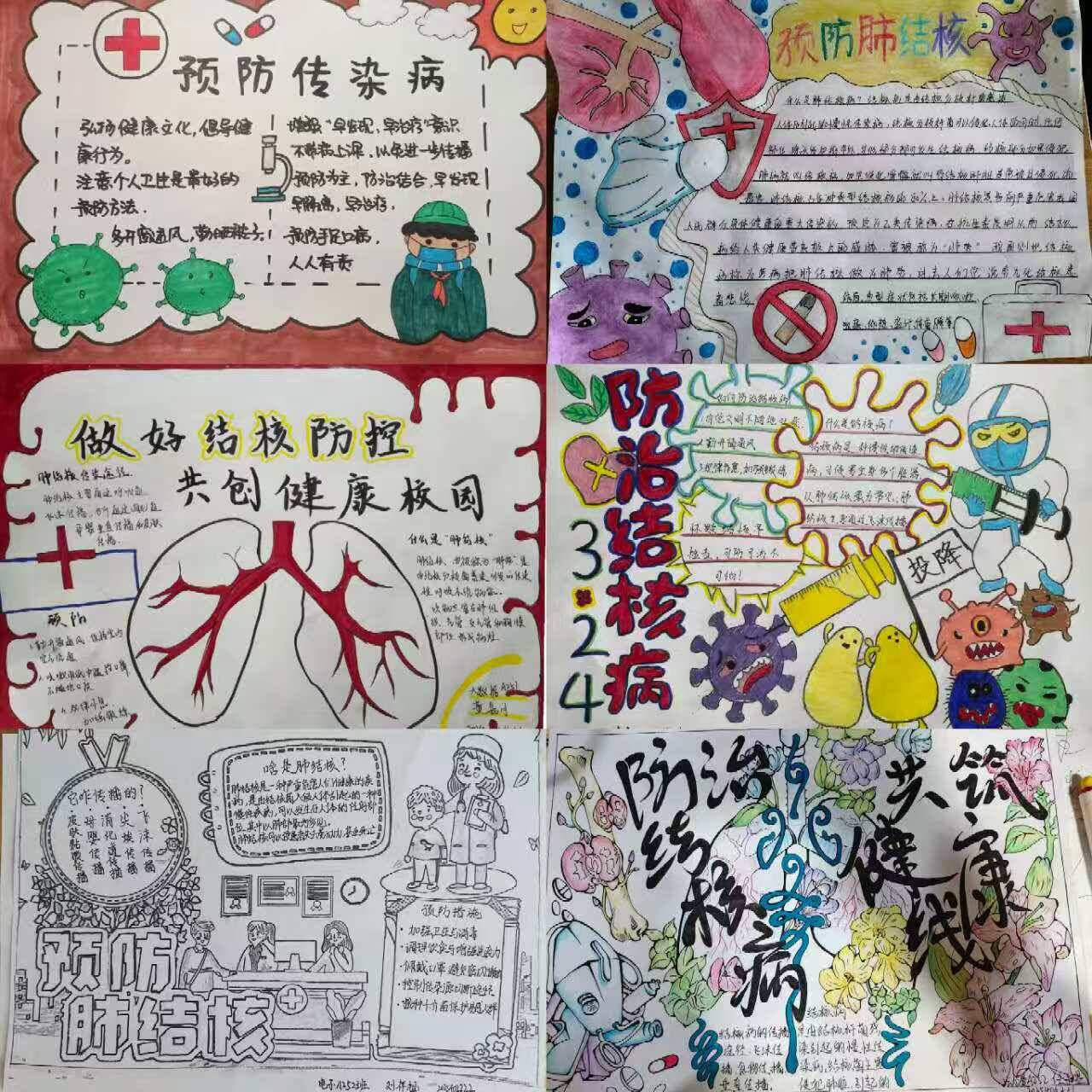 为丰富宣传形式,激发学生参与热情,系部组织开展“健康与防疫”手抄报绘制活动,鼓励学生以笔为媒、以画传声,普及防疫知识。手抄报涵盖结核病防治常识、春季流行病防控技巧、健康生活理念等内容,既展现了学生的创作才华,也传递了健康防疫正能量。