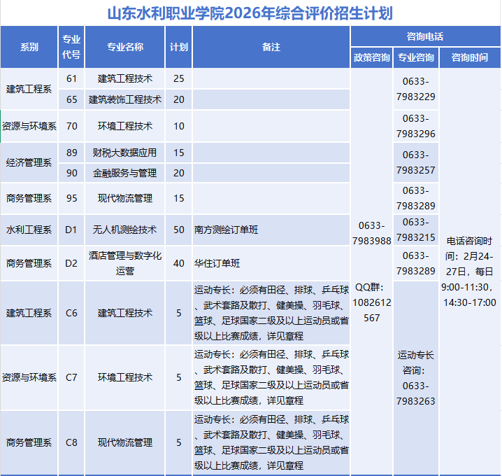 如需详细了解各专业特色、培养方向及发展前景,欢迎扫描下方二维码,或登录山东水利职业学院招生信息网,进入“招生动态”栏目,查看《2026年单独招生和综合评价招生专业解读》专题内容。