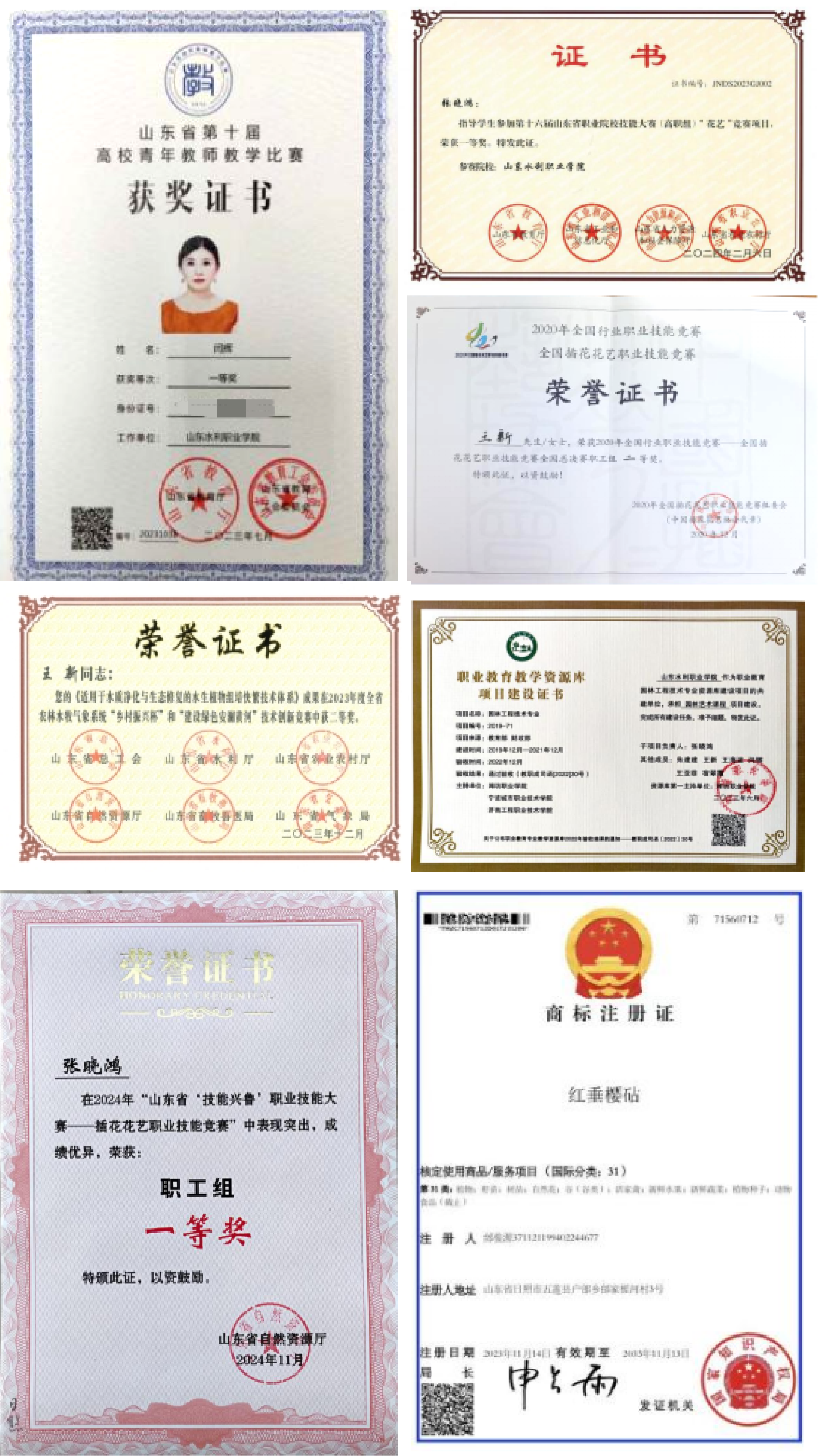 园林绿化工、插花花艺师、建筑信息模型(BIM)职业技能等级证书。