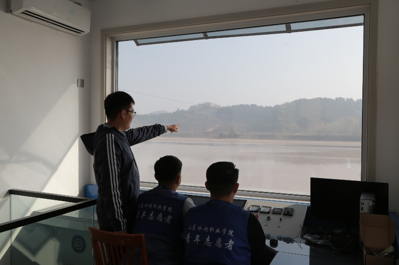 艾山水文站点下游500米处是黄河著名的“艾山卡口”,是黄河下游河段最窄处,艾山水文站工作人员为实践团介绍了艾山卡口处经历的多次大洪水情况以及近年来黄河沿岸生态环境的改善情况。黄河,这条中华民族的母亲河,经过多年科学统筹与艰辛治理,正重现生机与活力,在黄河岸边实践团成员上了一堂生动的流域生态保护课。