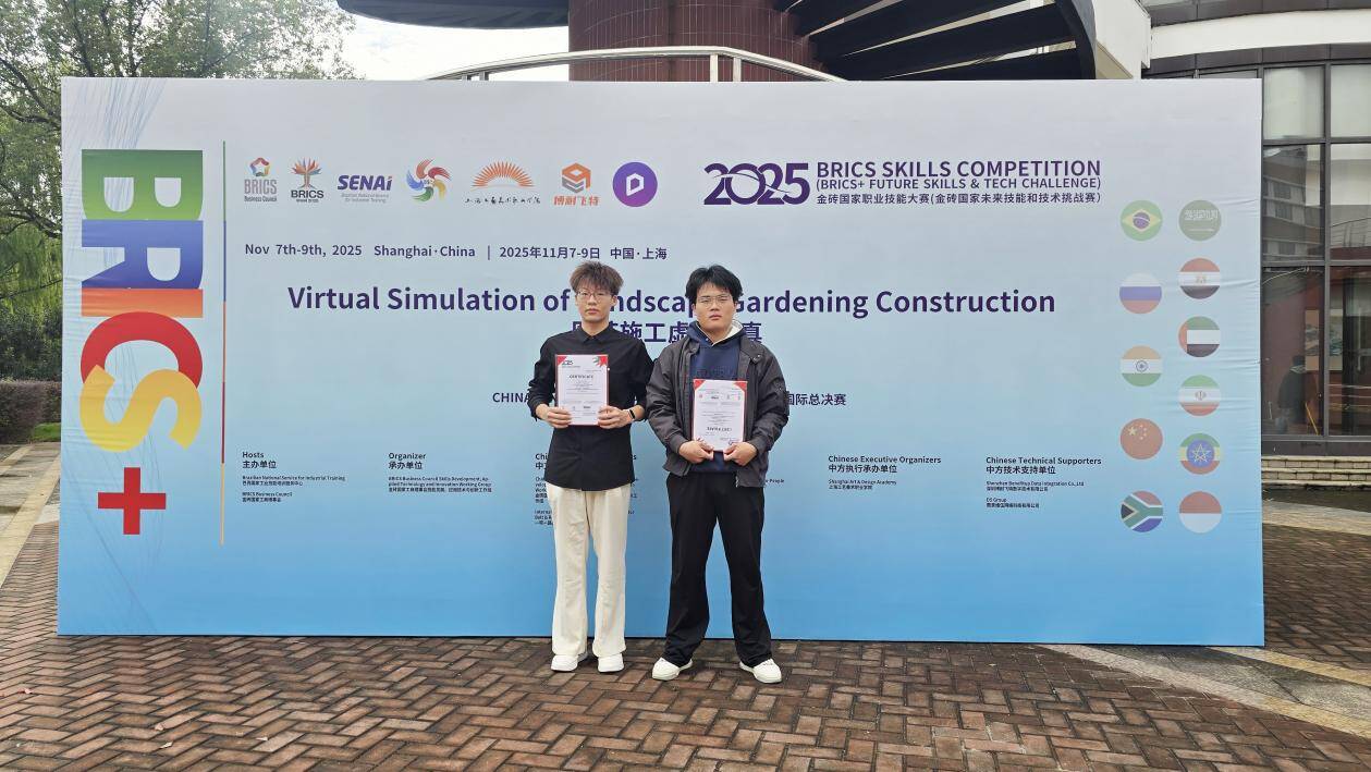 近日,2025金砖国家职业技能大赛“园艺施工虚拟仿真”赛项国际总决赛在上海工艺美术职业学院成功举办。来自全球多国的技能精英同台竞技,我院资源与环境系参赛团队凭借扎实的专业基础和出色的现场表现,在激烈竞争中荣获三等奖。