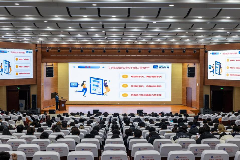 宣讲会上,王辽兵聚焦招聘核心需求,详细介绍北控水务集团发展历程、业务布局、企业文化,结合水环境治理、水务运营等行业发展趋势,细致解读岗位任职要求、薪酬福利、职业晋升通道及实习就业政策。咨询交流环节,学生们就职业定位、个人发展等关心问题进行了提问,企业负责人耐心解答,为学生求职提供了宝贵意见。