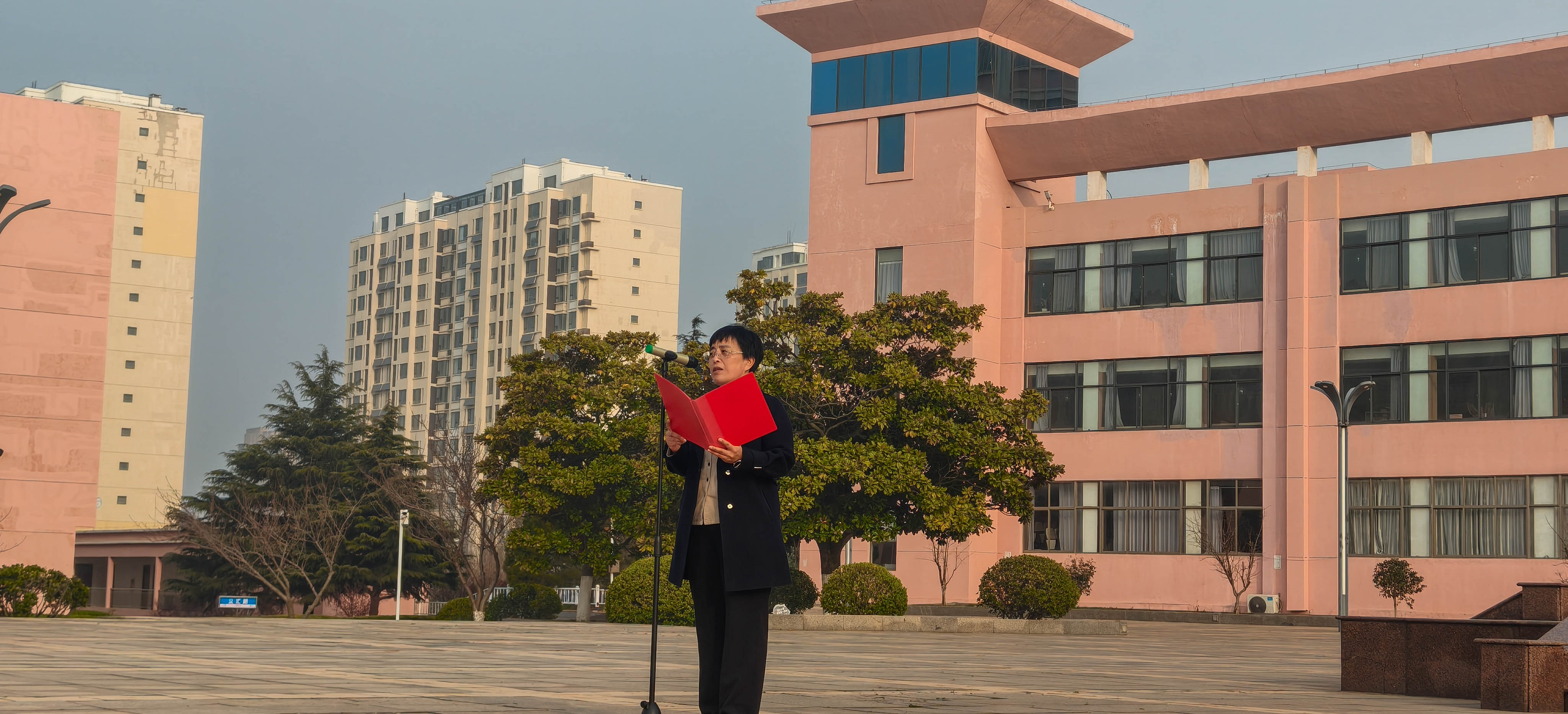学生代表在国旗下发出倡议,号召全体同学以雷锋为榜样,把学雷锋活动融入日常、化作经常,以专业所长践行护水责任,从点滴做起争当节水护水的行动派、生态环境的守护者,让雷锋精神在生态保护的实践中绽放新时代光芒。