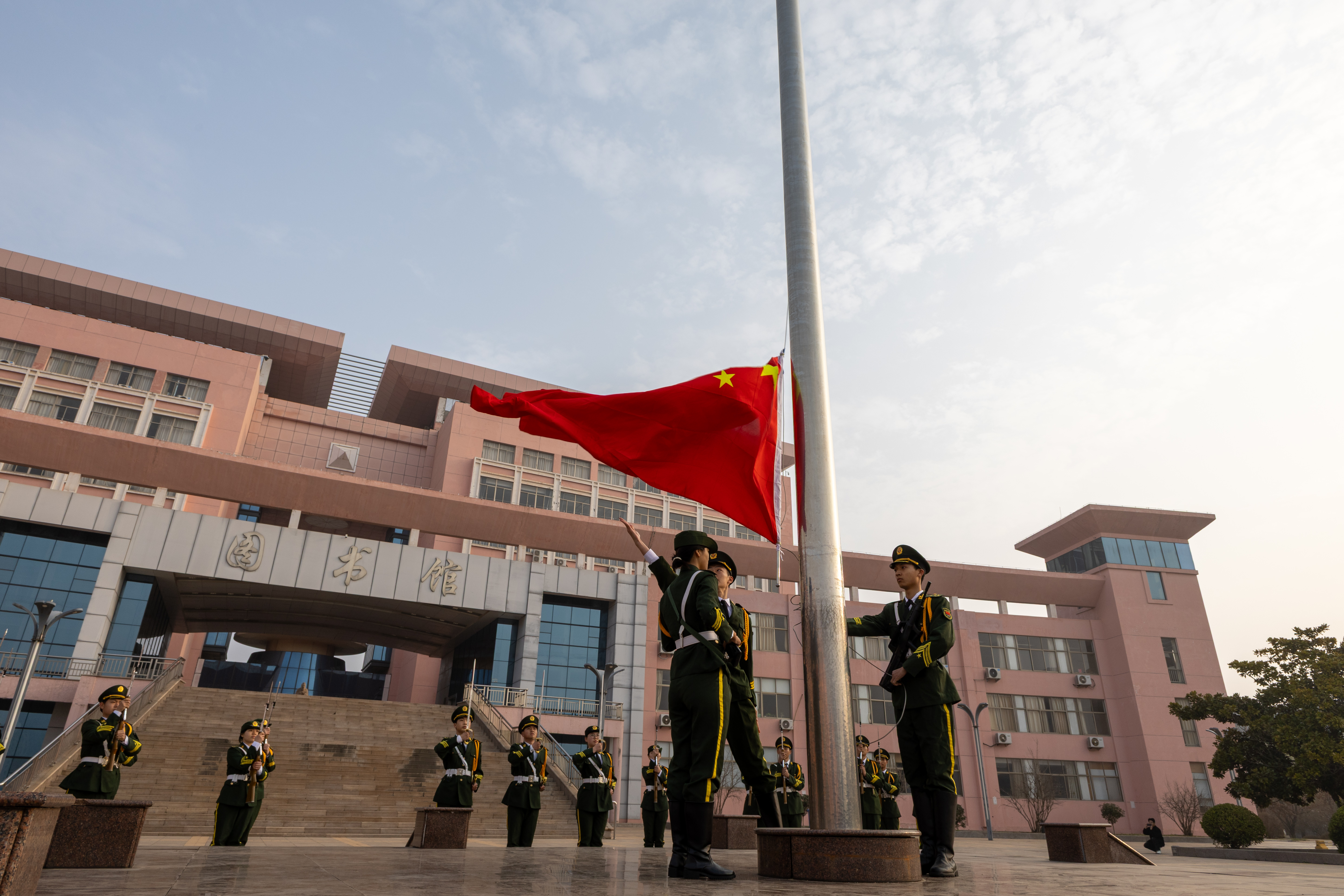 伴随着雄壮激昂的《义勇军进行曲》,鲜艳的五星红旗迎着朝阳冉冉升起。全体师生肃立行注目礼,满怀崇敬与自豪向国旗致敬,现场气氛庄重肃穆,催人奋进。
