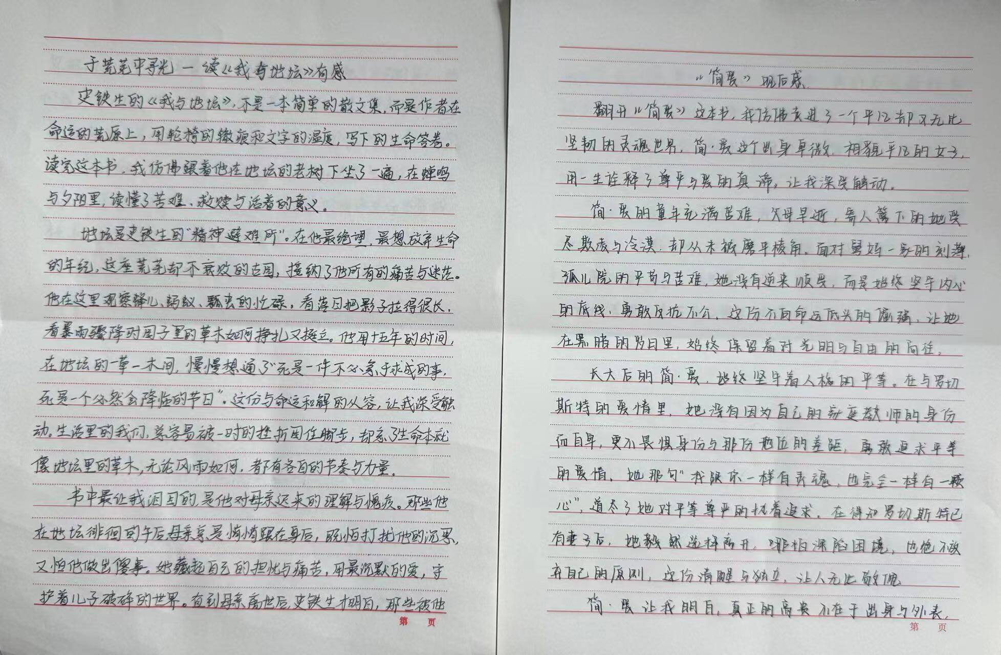 强化原创笔记撰写,推动学思践悟深度融合。活动紧扣“读写结合、以写促思”理念,引导学生深耕经典书籍、开展深度研读。学生在潜心品读的基础上,认真摘抄优美段落、梳理内容脉络、记录个人所思所感,完成内容详实的读书笔记。与此同时,大家立足自身专业学习、校园成长经历与未来职业发展规划,结合书籍内涵审视自我、汲取精神力量、启迪人生智慧,在摘抄积累、品读揣摩、动笔撰写的过程中沉淀内心、涵养优良品格。