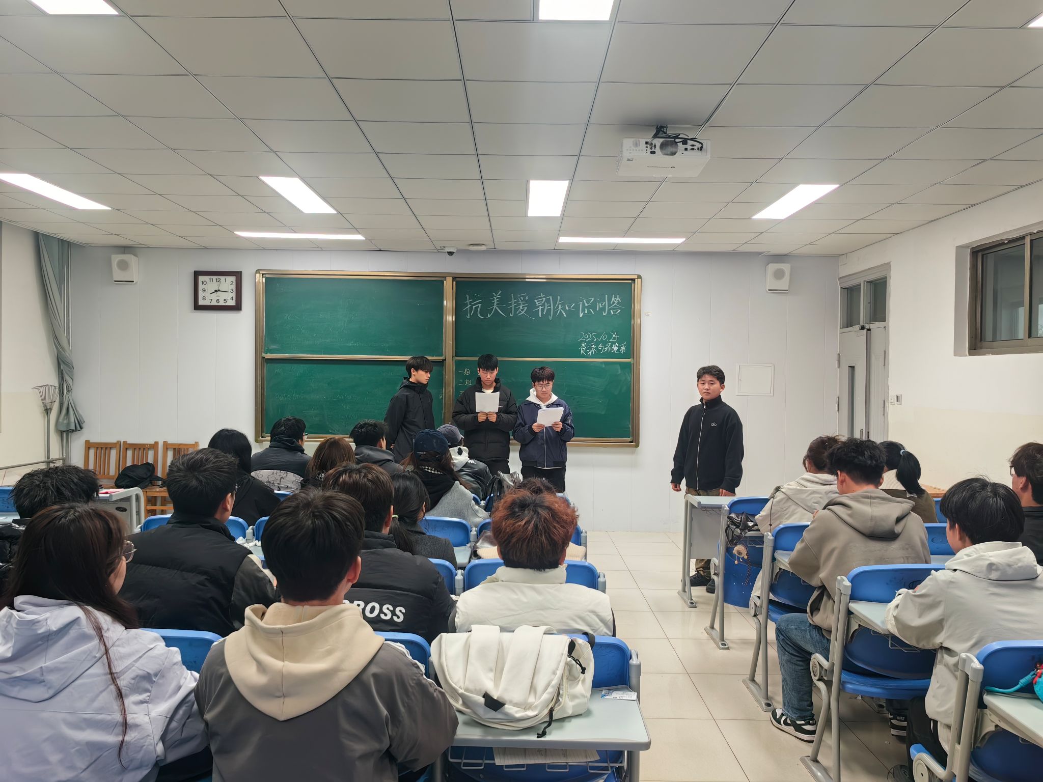 组织开展抗美援朝历史知识问答活动。同学们积极参与、踊跃答题,每一道题目都是一次历史的回溯,每一次回答都是对英雄的致敬,在知识问答的激烈碰撞中,大家对“祖国和人民利益高于一切、为了祖国和民族的尊严而奋不顾身”的抗美援朝精神有了更深刻的认知。