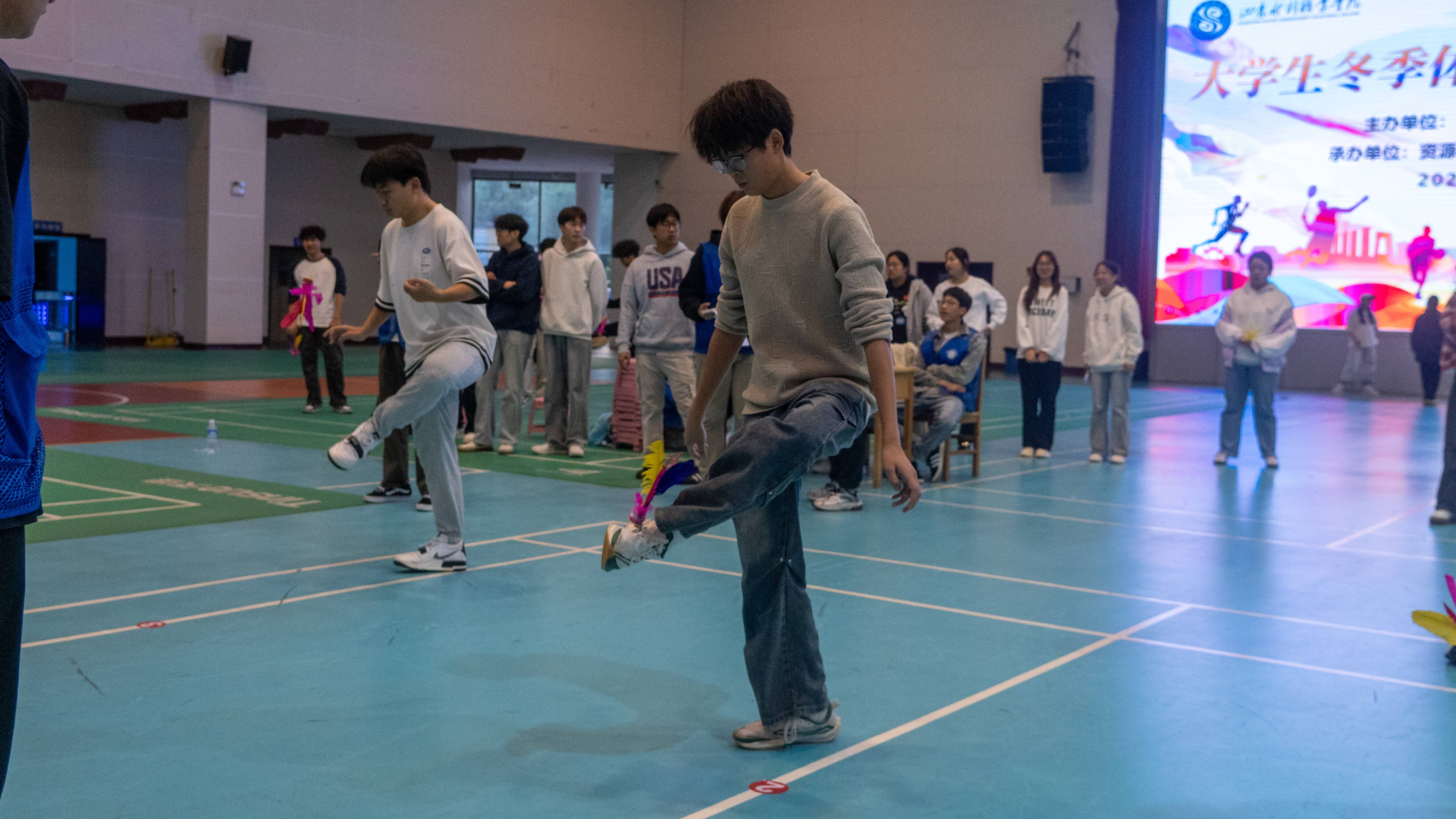 11.24日,由学生工作处、基础教学部主办,资源与环境系、“青”创辅导员工作室承办的冬季体育节踢毽子比赛在校体育馆圆满落下帷幕。本次比赛设单人、双人与团体三大项目,吸引了全校各院系的广泛参与。同学们在赛场上毽羽飞扬,展现了精湛的技艺、默契的配合与蓬勃的团队精神,现场喝彩声与加油声此起彼伏,气氛热烈非凡。