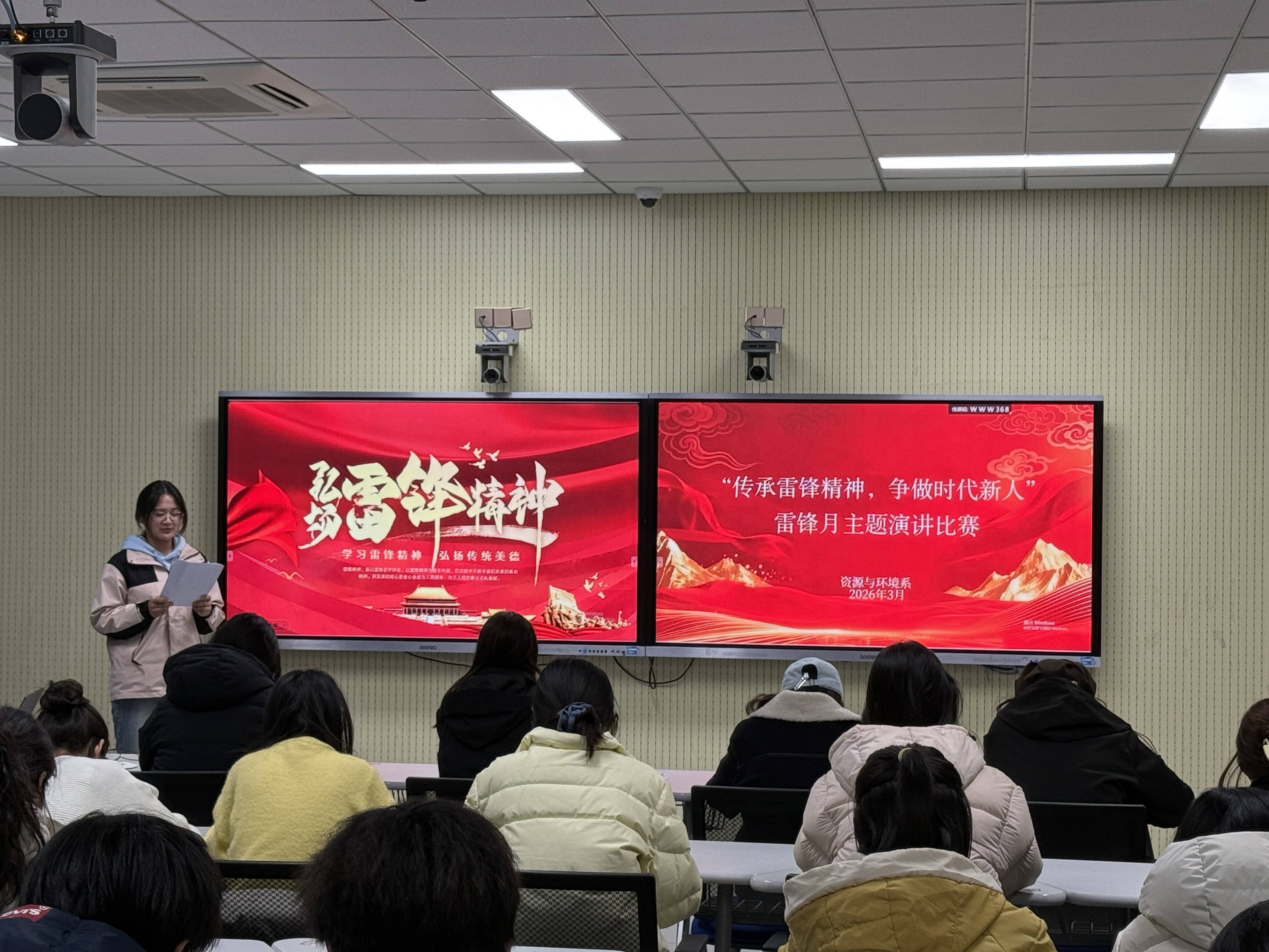“弘扬雷锋精神”主题演讲比赛中,参赛选手以真挚的情感、质朴的语言、深刻的思考,深情表达了向雷锋同志学习、将青春奋斗融入党和人民事业的坚定决心。比赛精彩纷呈,感人至深,充分展现了资环学子昂扬向上的精神风貌,进一步激发了同学们学习榜样、砥砺品格的热情,强化了理想信念教育与价值引领。